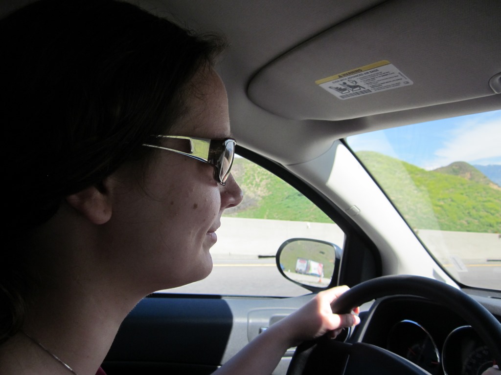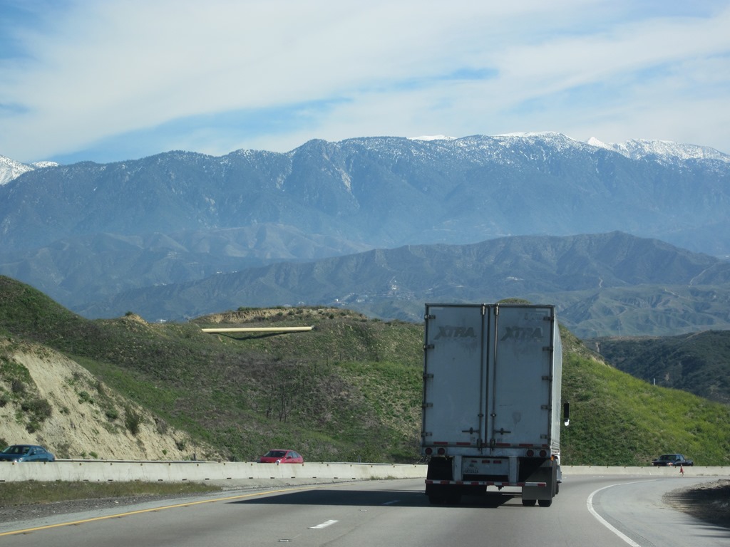 Die erste Schicht hat freiwillig Conny übernommen, sie will lieber einsame Landstraßen fahren als verstopfte Stadtstraßen, die darf ich dann machen ^^. Naja es blieb auch alles überschaubar mit dem Verkehr und landschaftlich bot unsere Tour auch einige grandiose Aussichten auf Gebirge, Hügel und Wüsen. Das erste echt witzige Bild ist das obige, Conny meint es könnte auch eine Werbung für eine Speditionsfirma sein. Brummis sieht man übrigens auf amerikanischen Straßen erstaunlich selten, ebenso wie Baustellen oder Unfallfahrzeuge. Nicht eins haben wir bis zum Ende des Tages gesehen. What goes wrong in Germany?