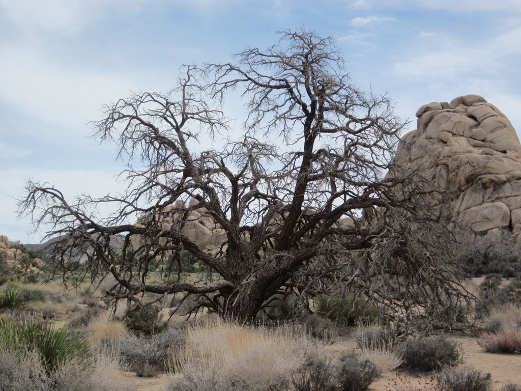 Unser kleiner Wanderweg führte durchs “Hidden Valley”, ein kleines von Felsen eingeschlossenes Tal. Insgesamt war das Gelände im Nationalpark durchaus Variationsreich. Während wir zunächst durch Steppenähnliches Gebiet gefahren sind, war das Hidden Valley schon nochmal steiniger, staubiger und noch weniger bewachsen als der Rest des Nationalparks. Auch die JoshuaTrees waren dort nicht mehr in der Fülle vorhanden.