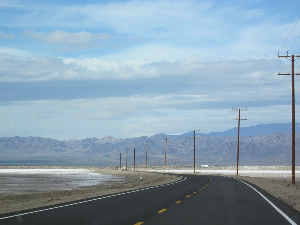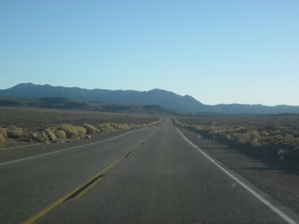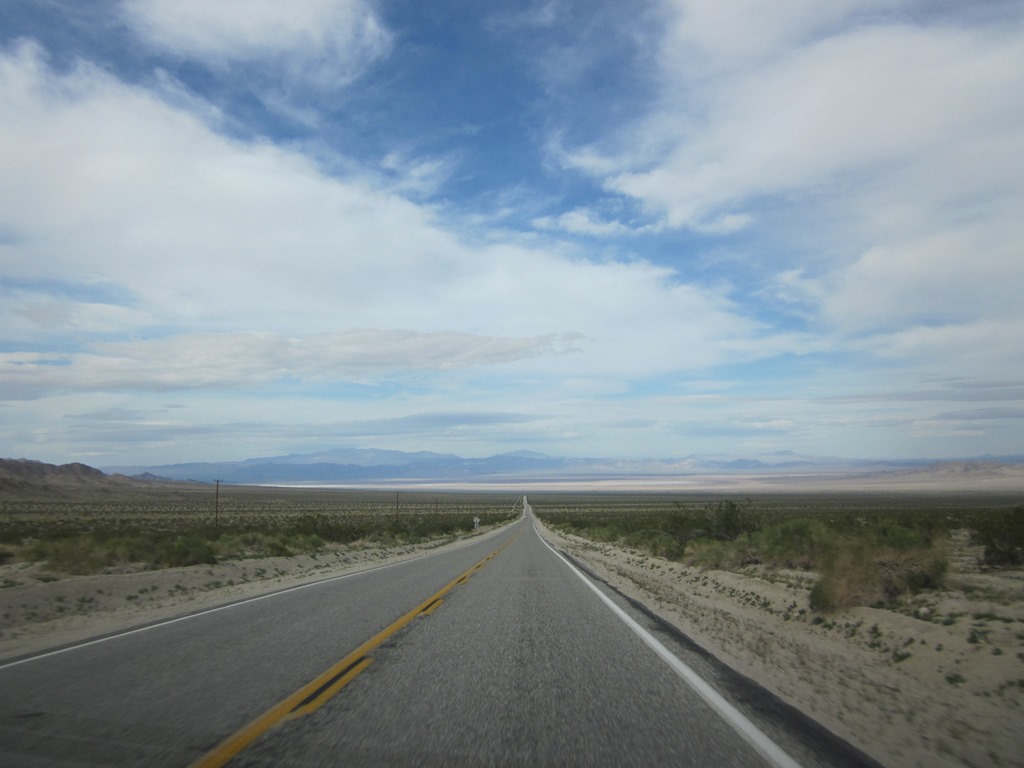 Heute heißt es: Bye bye Vegas und damit auch, was noch viel schlimmer ist, bye bye yakuzzi! Das Ziel heißt Bakersfield, als Zwischenhalt ist das Death Valley eingeplant. Zunächst geht es wieder auf einsame, meilenweit in den Horizont reichende Straßen, die durch immer kärglichere Landschaften führen. Doch sie bieten jede Menge Fotostoff.