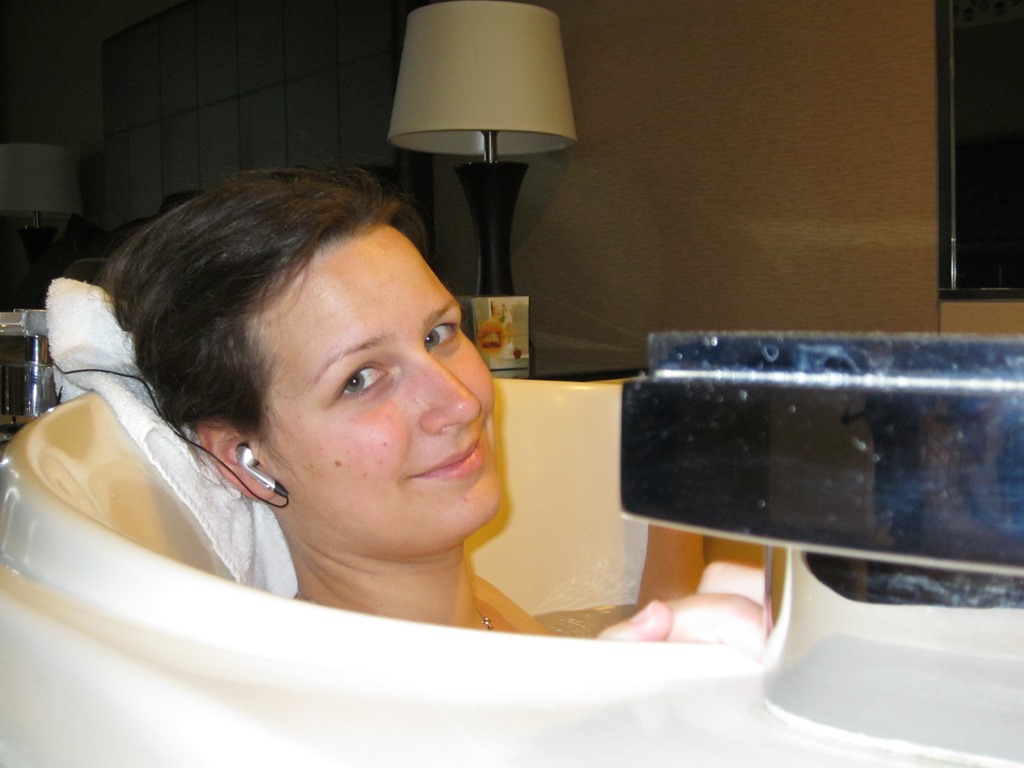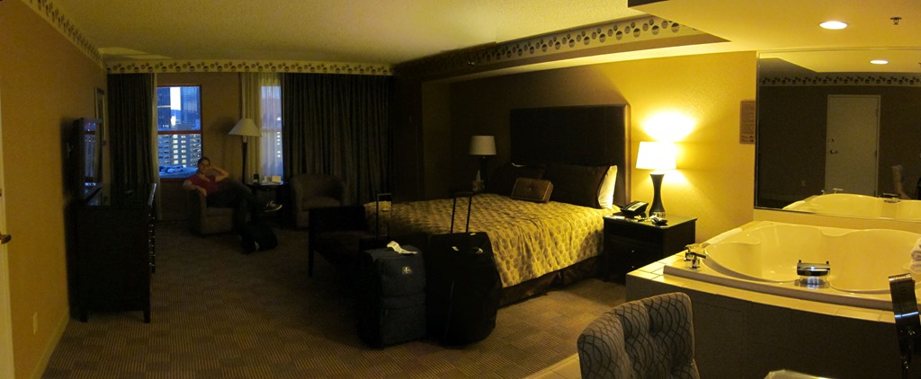 Nach der ausgiebigen Besichtigung der Strommasten begaben wir uns dann auch mal auf den Rückweg. Immerhin wartet Vegas auf uns. Bevor wir uns in die krasseste aller Städte stürzen, aber nochmal eine kurze Verschnaufpause in unserer Spa-Suite. Hier mal exemplarisch Conny in unserem Whirlpool.