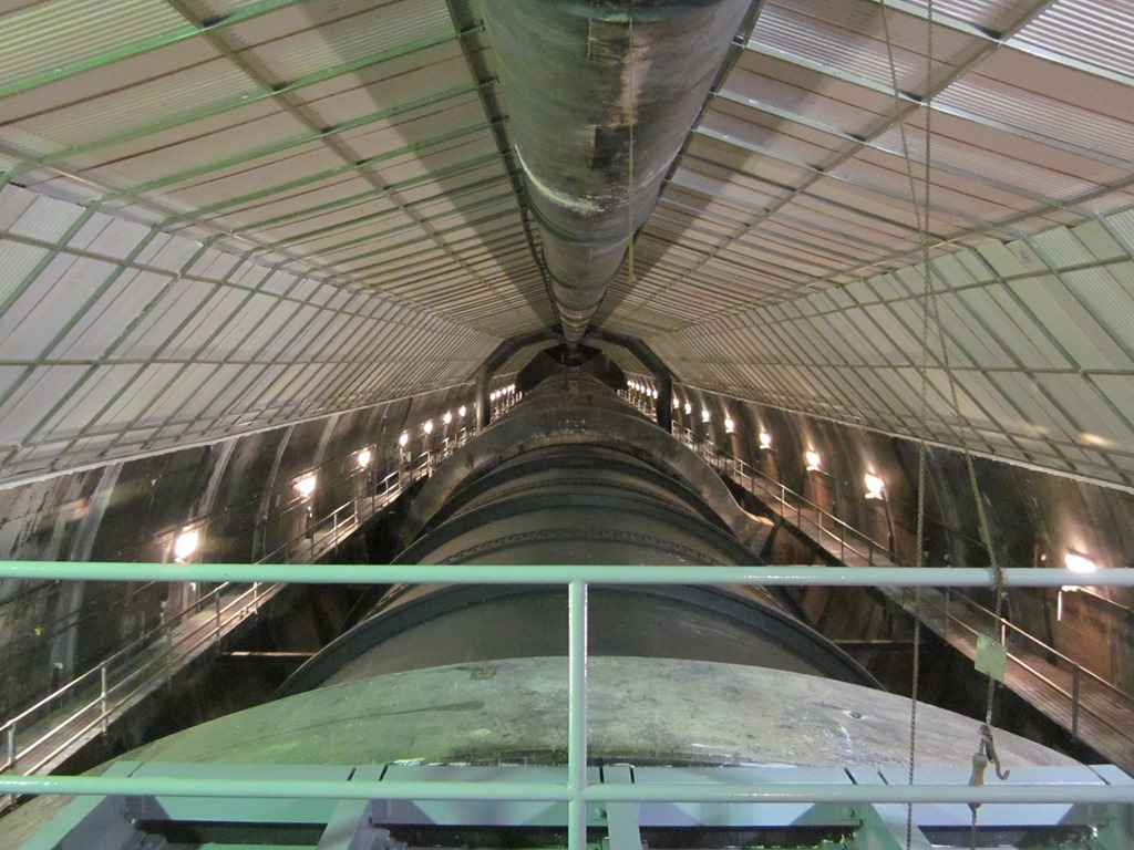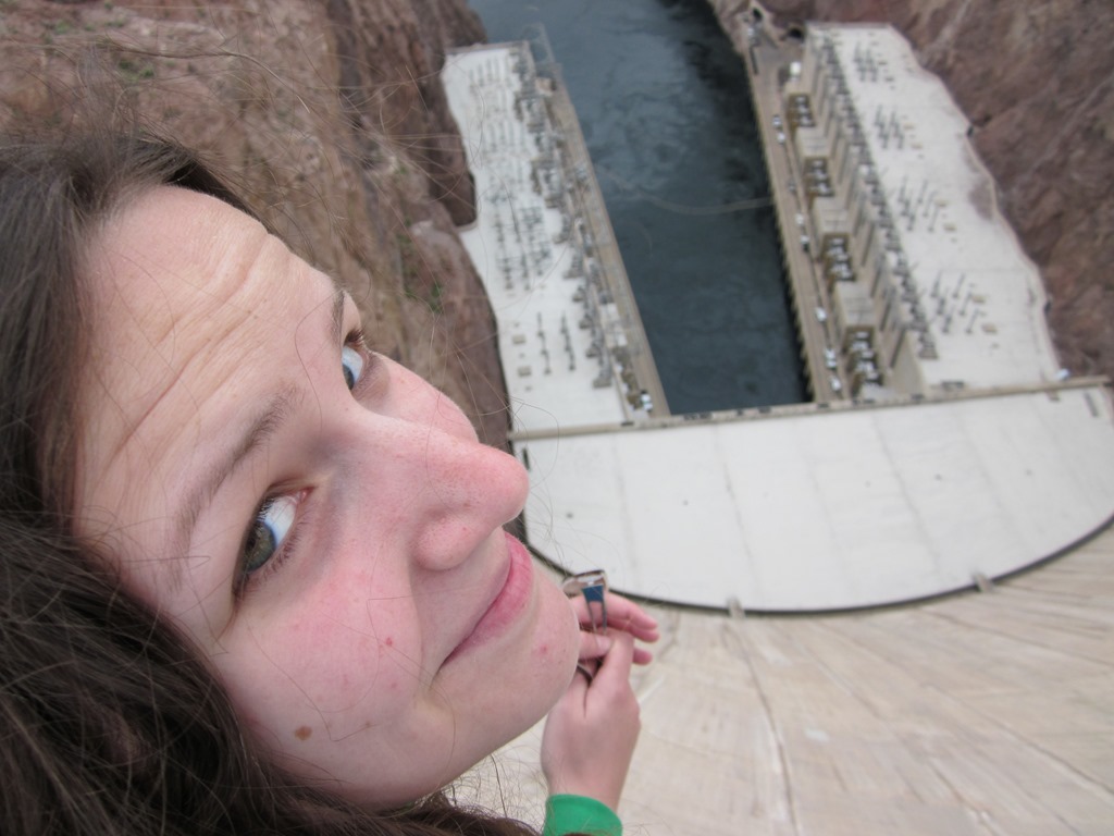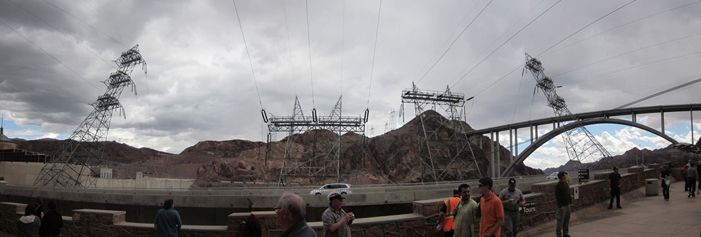 Der erste Stopp waren aber nicht die Generatoren sondern eins der Zuflussrohre zu den Generatoren. Durch das auf dem linken Bild zu sehende Rohr flossen, wenn ich mich recht entsinne über 9.000 Gallonen Wasser pro Sekunde. Die gesamte Plattform auf der wir standen vibrierte aufgrund der Wassermassen die durch das Rohr jagen. Das war schon saubeeindruckend. Weiter ging es zu den Generatoren, wo Conny dann hin und weg war. Es gib 8 auf der Nevada- und 9 auf der Arizona-Seite des Dams. Auf dem rechten Bild ist der Blick entlang der 8 Generatoren auf Nevada-Seite zu sehen. Ich hab leider vergessen, wieviel Strom sie letztendlich produzieren, ist aber im Stromnetz hinterher weniger als 1%.