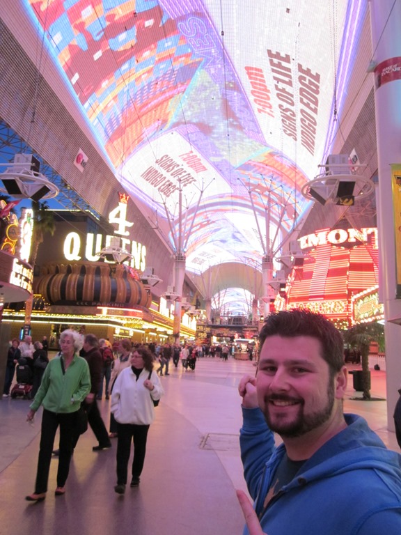 Wieder auf der Straße, haben wir uns mal auf die Suche nach einer Bushhaltestelle gemacht, um mit dem Bus nach Downtown Las Vegas zu fahren. Downtown Las Vegas erstreckt sich um die Fremont-Street und ist eigentlich das “klassische”, alte Las Vegas. Die bekanntesten Casinos sind vermutlich das “Golden Nugget”, welches sich nach einem kleinen Godlklumpen benannt hat, und das “4 Queens”, von dem ich grade mal kein Bild am Start habe.