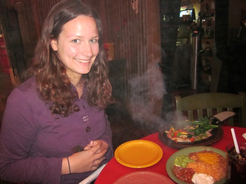 Gegessen haben wir auch noch garnichts. Ursprünglich wollten wir im Paris-Hotel etwas essen, um von dort aus ein wenig auf die Bellagio-Fontänen zu gucken, allerdings war es inzwischen ein wenig am sand-stürmen, sodass wir den Plan relativ schnell verwarfen und stattdessen zu “Gonzales y Gonzales” gingen, um mal richtig fieses mexikanisches Essen zu testen. Bei mir gab es einen “Fajita Burrito Grande”, lecker mit Chicken drin und so. Bei Conny gab es Tortilla mit gegrilltem Gemüse.