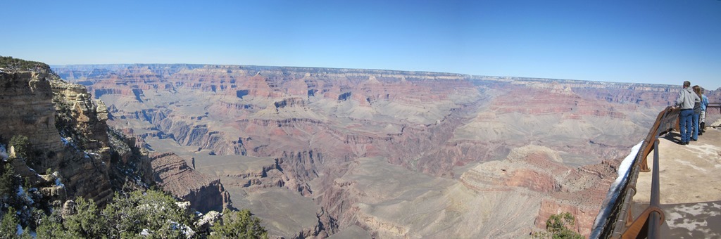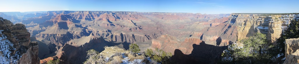 Als erstes viel auf, dass es hier schweinekalt war.Das könnte daran liegen, dass wir auf fast 2.000m Höhe sind. Das nächste was auffiel war, dass rings um den Grand Canyon nicht etwa Wüste ist, wie man auf den bildern meinen könnte, sondern Bewaldung, aber das sieht man auf den Fotos später noch besser. Nach einem kurzen Besuch im Visitors Center haben wir uns eine 2-3 Stündige Tour zusammengestellt und zogen los, erstmal den nächstgelegenen Aussichtspunkt zu suchen. Bislang hatten wir ja noch nichts vom Grand Canyon gesehen.