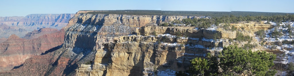 Sehenswert war es trotzdem. Und von hier konnte man auch nochmal ganz ordentlich die Bewaldung am Grand Canyon sehen. Auf dem unteren der beiden Bilder sieht man massenhaft Wald auf den Felsen.
