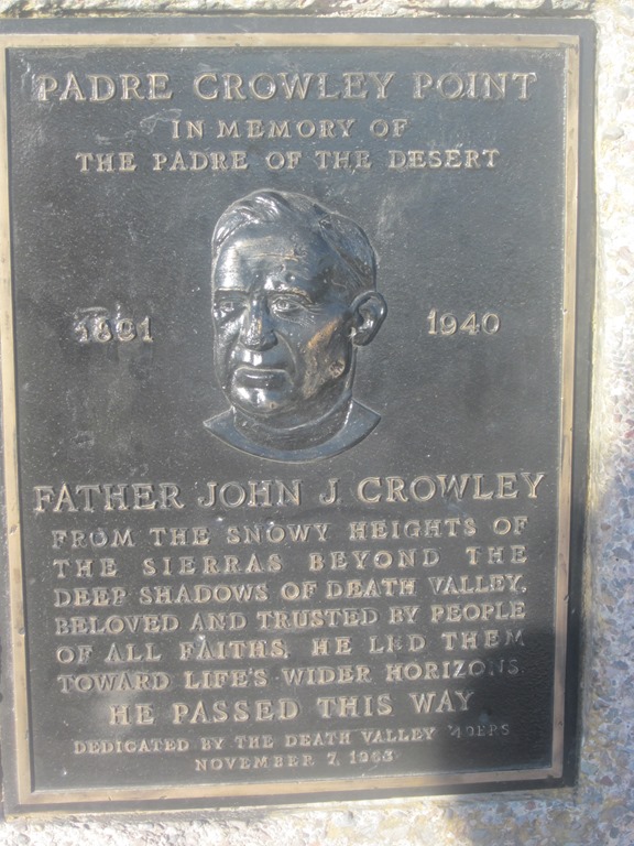 Nachdem wir also schon Gesteins- und Salzwüste gesehen haben, machen wir uns auf den Weg zu Stovepipe Wells, einem Ort mitten im Death Valley, wo es eine Tankstelle gibt. Kurz davor finden wir dann auch noch eine richtige Sandwüste mit hauchfeinem Sand, man hätte denken können, wir sind in der Sahara. Zumindest die Temperaturen stimmen, ich glaube fats zu zerfließen. Gefühlte 40°C, und wir haben Anfang März! In Stovepipe Wells gönnen wir uns außer einer Tankfüllung auch noch ein Eis. Wir nehmen eins, das aussieht wie Nogger und schmeckt wie altes Vanilleis in Oreokekskrümeln gewendet. Eine Enttäuschung. Dann machen wir uns endgültig auf den Weg nach Bakersfield. Dazu fahren wir noch Ewigkeiten durch das Death Valley, gewinnen richtig an Höhe und treffen auf der letzen Aussichtsplattform auf totale Stille ncoh auf diese Gedenktafel des “Padre of the desert”. Der ist zwar mal dort vorbei gekommen, hatt mit dem Death Valley aber sonst nichts zu tun. Hauptsache aber da steht was zum Gucken. Fazit: das Death Valley ist eine beeindruckende Landschaft. “Death” ist dort übrigens auch der Radioempfang, unsere Fahrt wird lediglich durch melodisches Rauschen untermalt.
