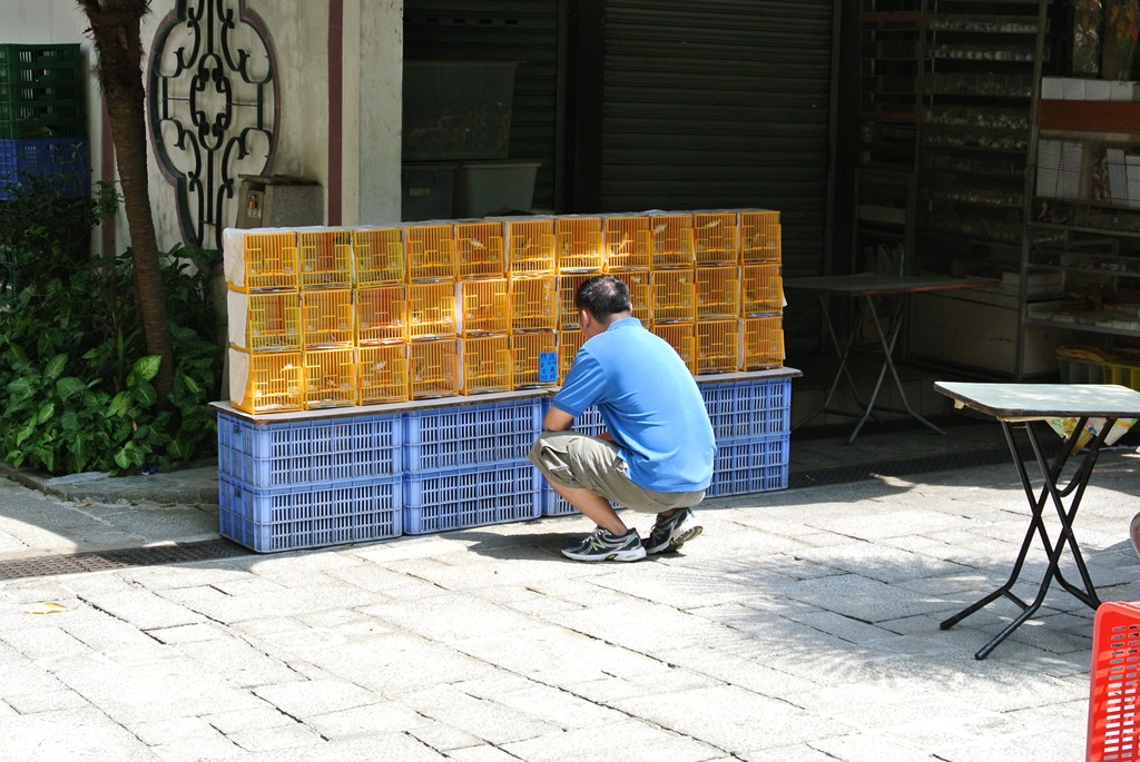 Morgens hieß es dann: Raus aus den Federn – trotz Jetlag – und Hong Kong erkunden! Conny kam nicht vor 5 Uhr zum Schlafen und war dementsprechend etwas gerädert. Aber hilft alles nichts. Wir haben uns in den Infounterlagen unserer netten Info-Dame vom Flughafen eine Walking-Tour zusammengebaut und sind direkt los. Die ersten Stopps waren der Flower Market und der Bird Park. Ersterer waren unzählige Floristen in 2 oder 3 Straßen beeinander. Conny war entzückt. Ich bin ja nicht so der Blumen-Freund. Direkt daneben gibt es eine Art Vogelmarkt, wo es zahlreiche Vögel und Vogel-Zubehör zu kaufen gab. Mir sind sofort die typisch chinesischen runden Vogelkäfige aufgefallen. Conny meint aber, die sind vielleicht garnicht typisch chinesisch. Man weiß es nicht.