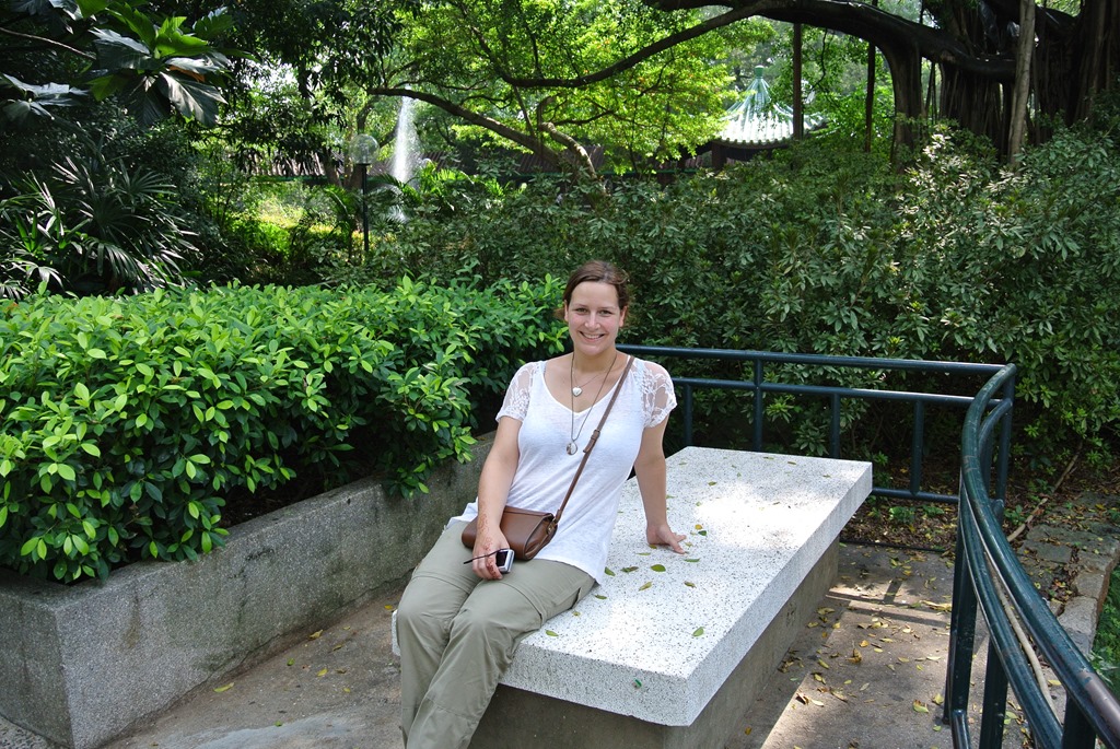 Da sitzen wir also nichtsahnend, wassertrinkend auf eine dieser Bänke und schauen uns die Skyline und die ganzen Asiaten an, als wir selbst, bzw. eher Marcus zu einer ganz eigenen Attraktion wird. Denn plötzlich kommen 5 Asiaten auf uns zu, ganz aufgeregt redend (wir natürlich kein Wort verstanden, weil kein Englisch) und freundlich lächelnd und bevor wir überhaupt verstehen, was ihr Anliegen ist, hat sich bereits eine der Damen zwischen uns gesetzt und die nächste macht Fotos von uns. Nach etwa 5 Fotos von den guten Menschen und uns verabschieden sie sich freundlich und ziehen, aufgeregt zum Abschied winkend, von dannen. Vor lauter Perplexität haben wir natürlich kein Bild machen lassen. Ich vermute ja, Marcus dichter Bart hat sie angelockt. Da sie auch kein Wort Englisch sprachen, haben sie vielleicht auch einfach noch nie echte Europäer gesehen. Fazinierend.
