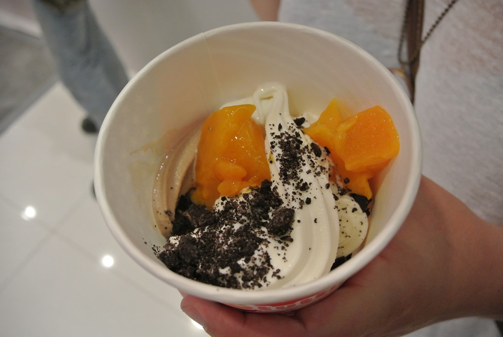 Schließlich haben wir den Rückweg angetreten bei dem wir unverhofft in eine Verkaufshalle gelangten, welche meiner Meinung schon in Teilen der Halbwelt angehörte. Hier gab es haufenweise Elektronik und frittiertes Essen. Krass. In einem schickeren Einkaufszentrum zwei Straßen weiter konnte man sich verschiedene Sorten Frozen Joghurt zapfen, dekorieren und dann nach Gewicht bezahlen. Haben wir natürlich gemacht. Sehr süß, aber sehr lecker. Umgerechnet 2,40€. Kannste nix sagen.