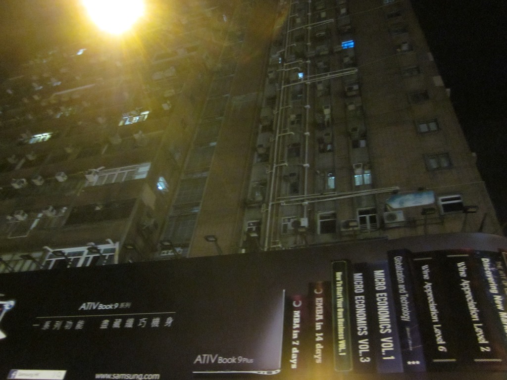 Also haben wir für 33 HK$ pro Person (etwa 3,30€) ein Busticket gekauft und sind mit der Linie A21 zum Argyle Center gefahren,- die Busse sind Dopperdecker mit genügend Platz für Gepäck und sehr angenehm. Beim Aussteigen erfolgte dann bei mir der erste Kulturschock, insbesondere weil hier sooooo viele Menschen sind. Unglaublich. Das Hostel selbst haben wir recht schnell gefunden; es befindet sich im Sincere House mit etwa drölf anderen Hosteln und der Besitzer ist zwar introvertiert aber nicht unbedingt unfreundlich. Das Zimmer ist klein, aber alles ist da, am wichtigsten mit Klimanlage, aber ohne Fenster. Es sind zwar mit 30°C 10 °C weniger als in Dubai, aber die Luftfeuchtigkeit ist deutlich höher. Die Aussenansicht des Gebäudes bei Nacht ist oben auf dem mittleren Bild zu sehen