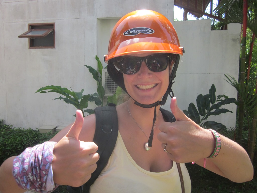 Am nächsten Tag gibt es bei uns eine motorisierte Unterstützung zum Erkunden der Insel. Wir haben uns für etwa 6€ einen Roller geliehen und gehen damit auf Erkundungsfahrt. Die Helme auf den Bildern sehen zwar uncool aus, sind aber Pflicht.