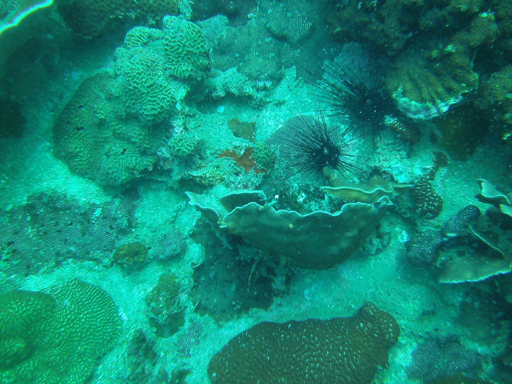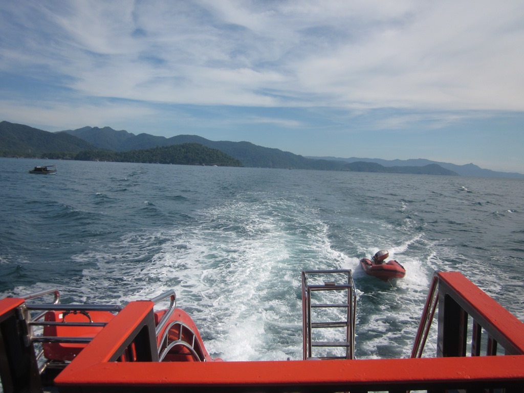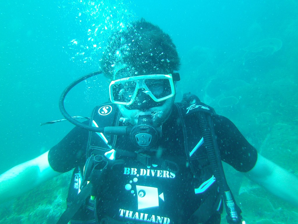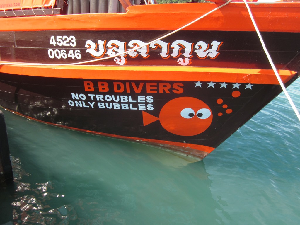 Wieder pünktlich um 8:15 werden wir am Hotel abgeholt. Heute geht es aber nicht zur Tauchschule, sondern zum Pier und dann direkt auf das dort wartende Boot mit dem wir heute zu den Tauchstellen fahren. Der Plan sieht drei Stopps vor: Zuerst wird an einem Schiffswrack gehalten, die “Chang”, das dort letztes Jahr speziell für Taucher versenkt wurde. Leider ist das Wrack zu tief für uns, nämlich auf 30m. Wir dürfen nur 18. Der zweite und dritte Stopp sind an Korallenriffen.