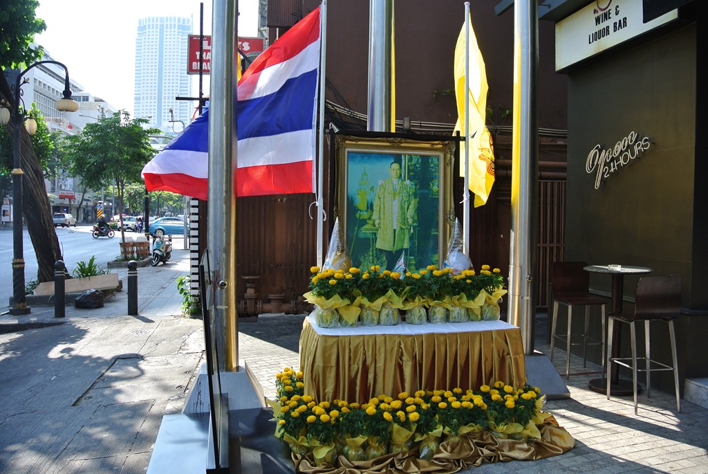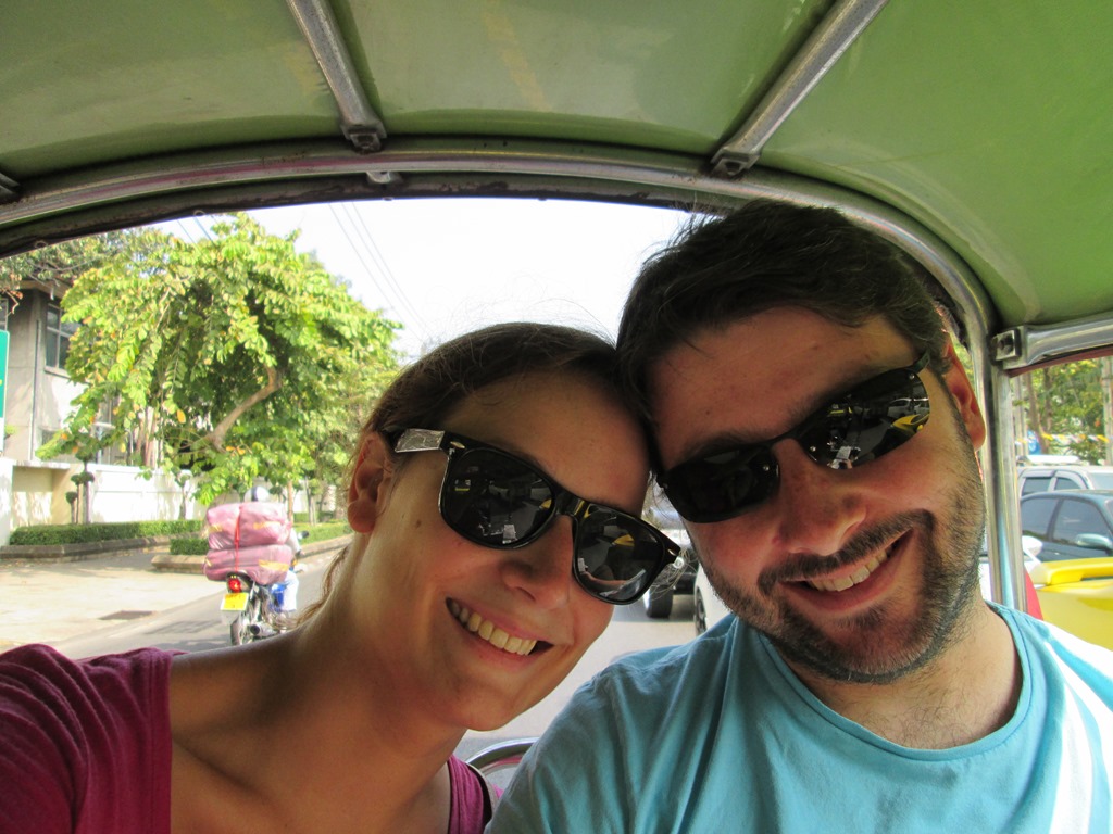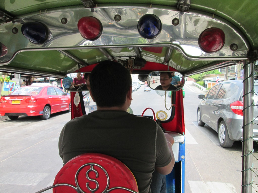 Während wir so vor uns hin bummeln, werden wir von mehreren TukTuk-Fahrern angequatscht. Normalerweise sind wir ja immun dagegen, da die sehr oft hinterhältige Dinge versuchen. Heute aber hatten alle die gleiche Masche: Aufgrund des Königsgeburtstages kostet eine Sightseeing-Tour nur 30 Baht (weniger als 1€), da die TukTuks für jede absolvierte Fahrt von der Regierung einen Sprit-Coupon bekommen und gratis tanken können. Leichtgläubig wie wir sind, fanden wir die Story glaubwürdig, da auch schon mehrfach gehört, und springen ins nächstbeste TukTuk.