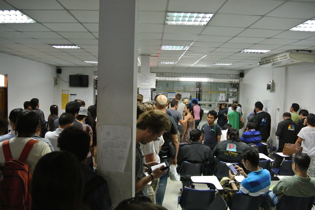 Nach viel Nudeln und viel rumgelaufe in Bangkok, sind wir dann um 15:30 Uhr wieder an der Botschaft und davor stauen sich schon einige Hundert Menschen und warten darauf, dass sie wieder auf macht. Oha. Kaum gehen die Türen auf, strömen auch schon alle rein und bilden mehr oder weniger erkennbare Schlagen an den einzelnen Schaltern. Es ging dann aber alles relativ schnell und wir hatten unsere Pässe samt Visum in den Händen. Das war ja einfach.