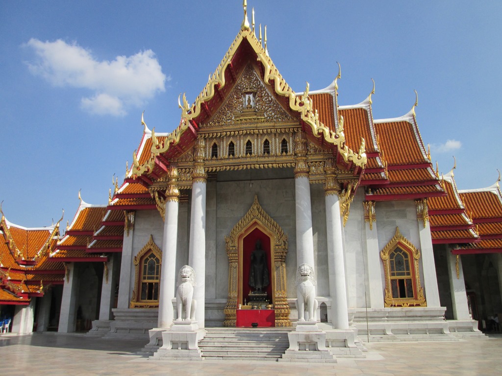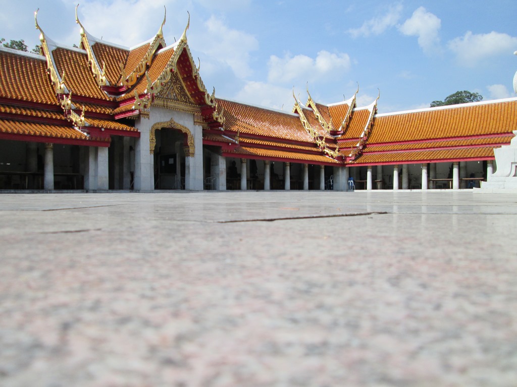 Der Marmortempel war relativ unspektakulär. Ein buddhistischer Tempel aus Marmor. So langsam stumpfen wir glaube ich bezüglich Tempeln ein wenig ab. Jedenfalls haben wir uns den nur sehr kurz angeschaut und sind dann wieder zum Tuk Tuk. “Three more Export” – Oh no. Eine Schmuckfabrik, ein Seidenladen und zwei Herrenausstatter später dann endlich der Grand Palace, das Endziel unserer Reise. Trinkgeld hat der olle TukTuk-Fahrer dann auch keins bekommen und wir sind ja auch für wenig Geld zum Ziel gekommen. Es roch trotzdem ein bisschen nach Scam (so nennt man auf engl. wohl die Touristenfallen).