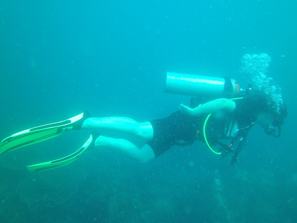 Wieder an der Oberfläche, musste Conny mich dann noch zum Schiff “retten”. Eine der Übungen die man durchführen muss, ich hatte gestern Patrick schon zum Boot gezogen. Eine dreiviertel Stunde später folgte dann noch mein vierter und Connys dritter Tauchgang. Hier mussten wir dann beispielsweise Übungen zum “floating” machen. Also unter Wasser auf der gleichen Höhe “schweben” nur durch das eigene Lungenvolumen gesteuert. Das fand ich etwas schwerer.