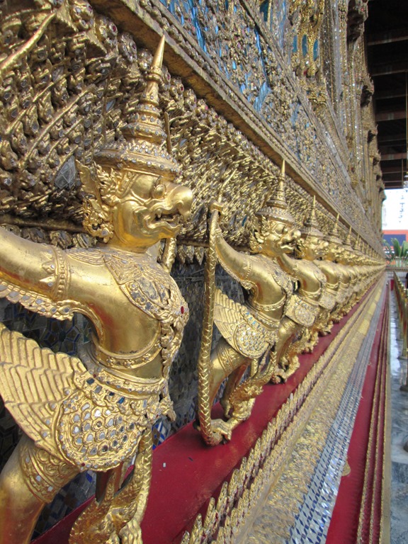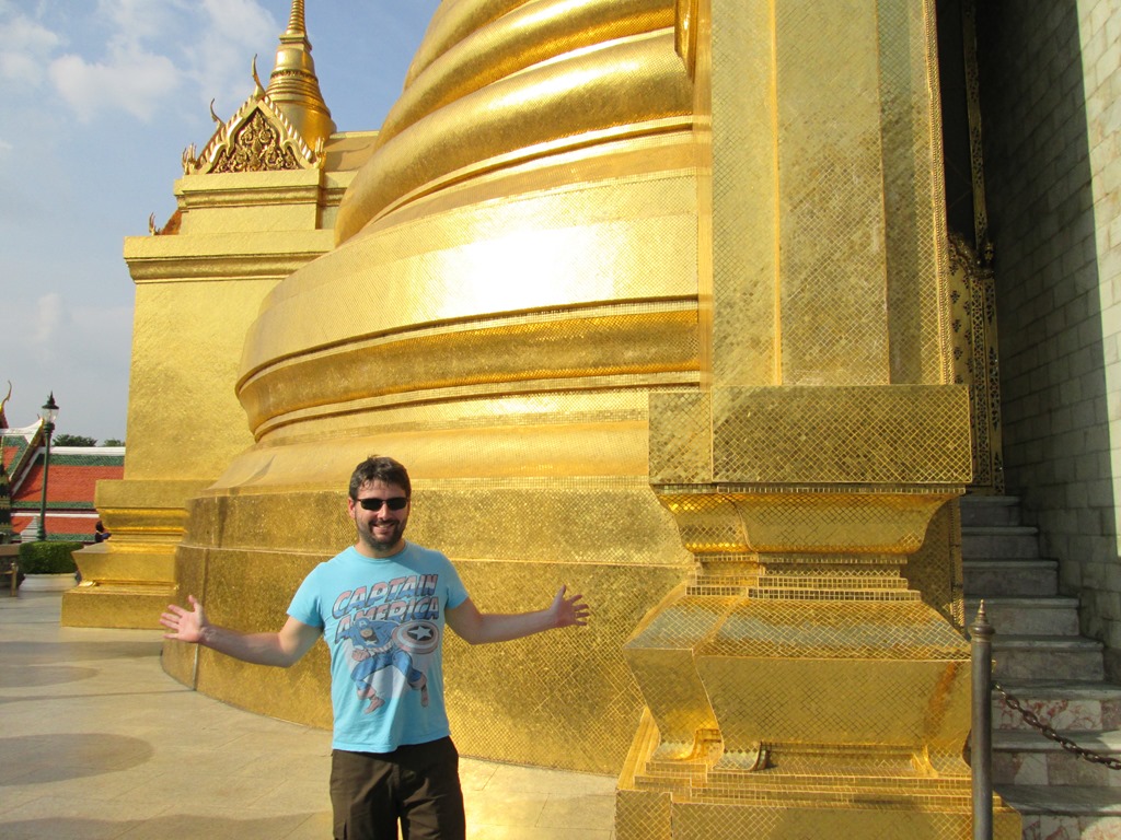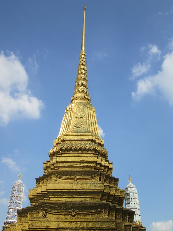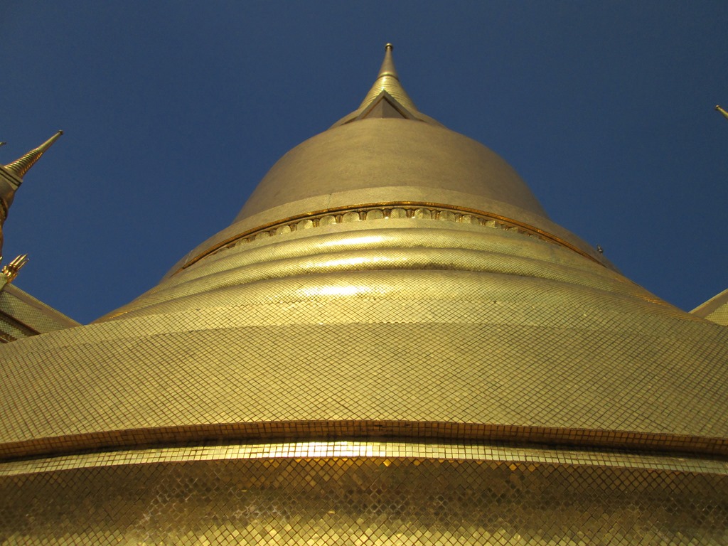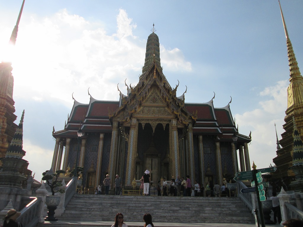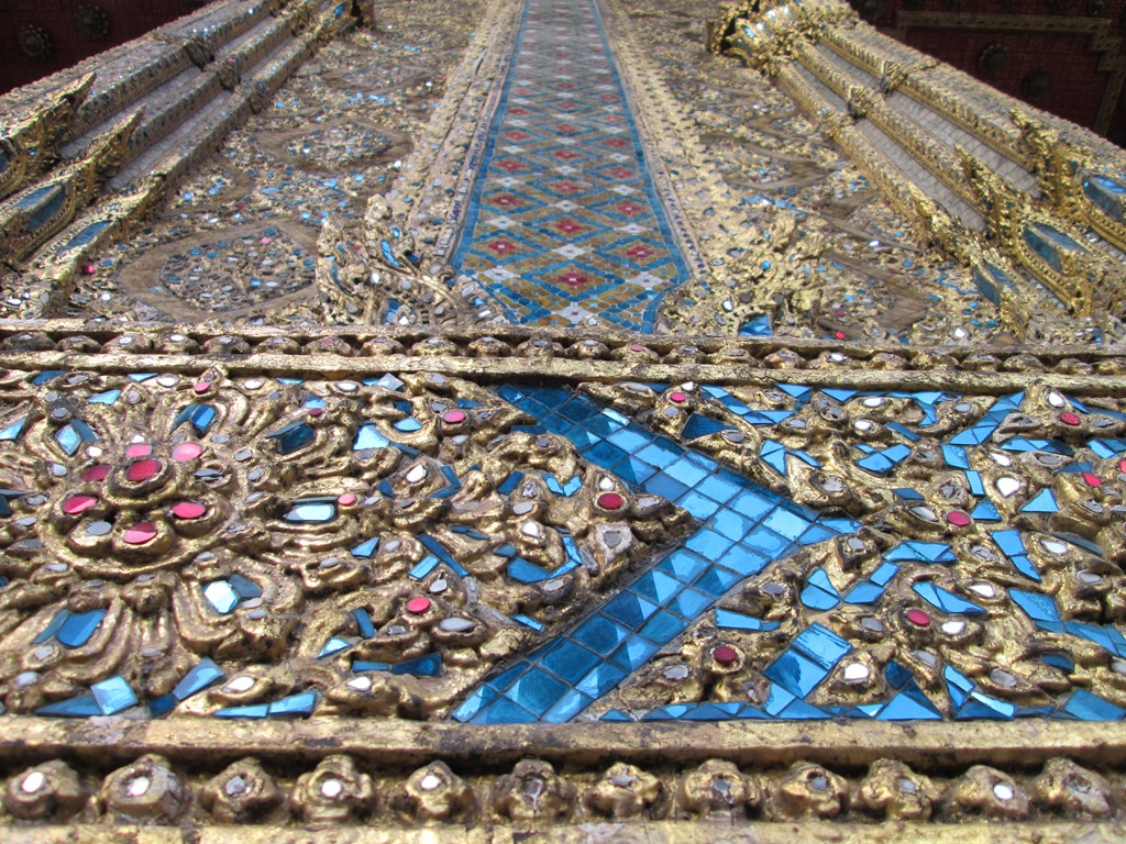 Der Haupttempel ist aber neben dem goldenen Turm in einem mit viel Glitzer geschmückten Gebäude. Drinnen ist ein Smaragd-Buddah, den darf man auch nicht fotografieren. Das war schon sehr prunkvoll und sehr beeindruckend.