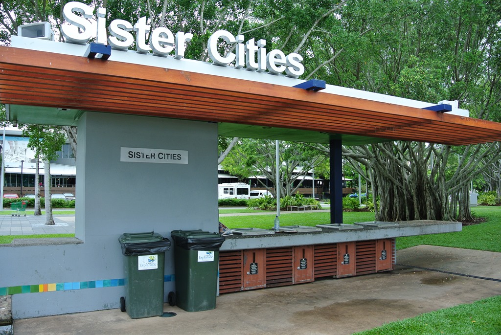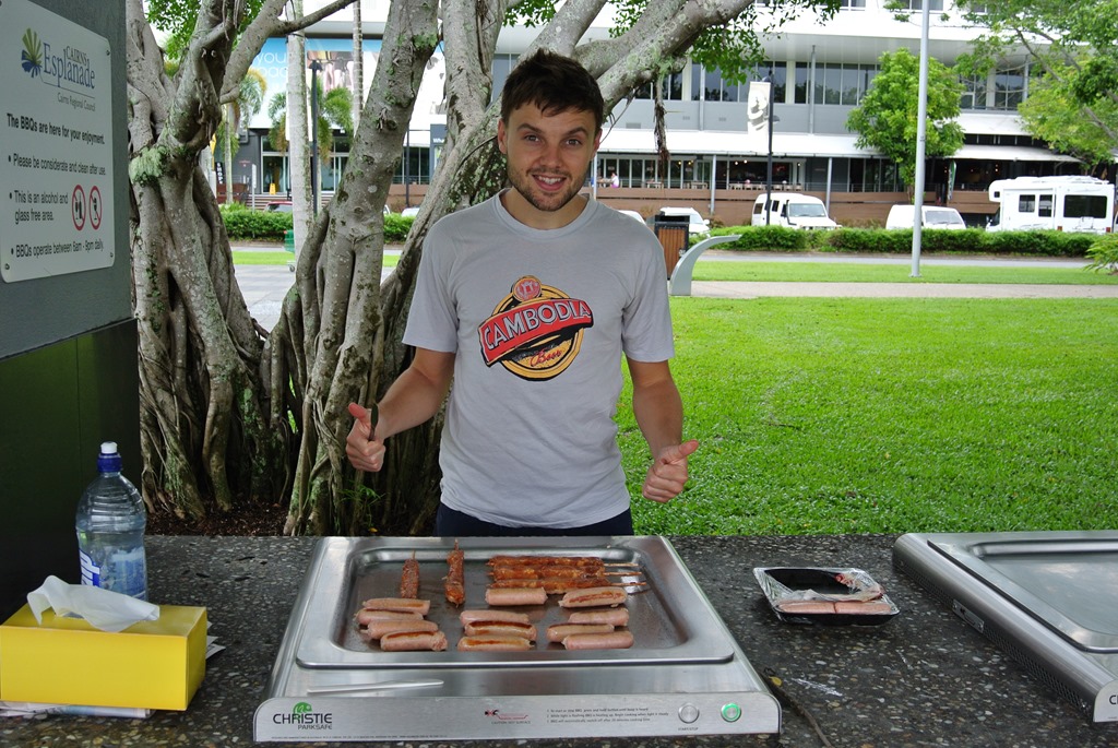 Hier in Cairns gibt es entlang der Promenade gratis Grillstationen, die man einfach benutzen kann. Einfach ein Knöpfchen drücken und das Ding wird heiß und man darf dort grillen. Total praktisch. Es gibt bestimmt 10 solche Stationen mit jeweils 4 Platten drauf.