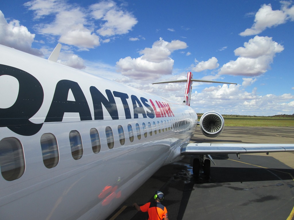 Nach drei Nächten im Outback, geht unsere Reise heute schon weiter. Man hätte hier sicherlich auch noch mehr entdecken können, aber nur für den Uluru war das schon ganz okay so. Nach dem Auschecken haben wir uns noch ein paar Pancakes in der Hostel-Küche gebrutzelt und dann ging es schon los mit dem Free-Transfer zum Flughafen. Das Hostel hier hat uns eigentlich sehr gut gefallen, alles war sauber und gemütlich und zwar etwas teurer als in Sydney aber nicht übermäßig. Bei Conny hat der Laden aber kurz vor unserer Abfahrt noch ordentlich Minuspunkte gesammelt. Es hat nämlich am Abfahrtstag tatsächlich im Outback geregnet und zwar stark und unsere Rucksäcke standen in einem kleinen Verschlag zur Gepäckaufbewahrung bis zu unserer Abfahrt. Doch, ohje, Connys Rucksack stand wohl direkt unter einem Loch im Dach und war anschließend Klitschnass. Wir hatten erst ein wenig Angst bezüglich unserer Gepäckbeschränkung, war aber alles kein Problem.