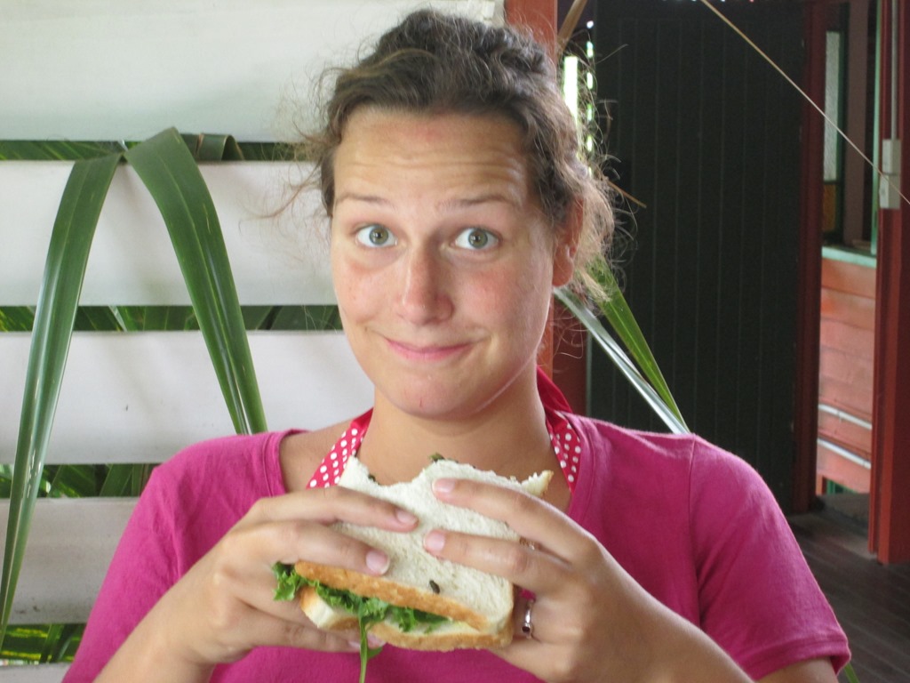 Auf dem Rückweg zum Hostel entdecken wir noch Millionen von Fledermäusen (oder sind es doch Flughunde?) in den Bäumen entlang unseres Heimweges. Ich hätte viel Geld darauf gesetzt, dass Conny von Fledermauskot getroffen wird, aber sie blieb verschont und ich dankenswerter Weise auch. Im Hostel gab es erstmal lecker Sandwiches, jaja so ernähren wir uns hier! ![]()