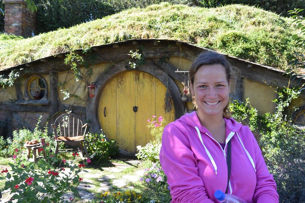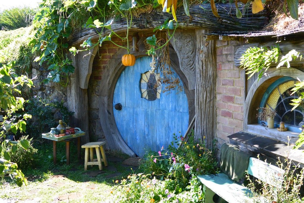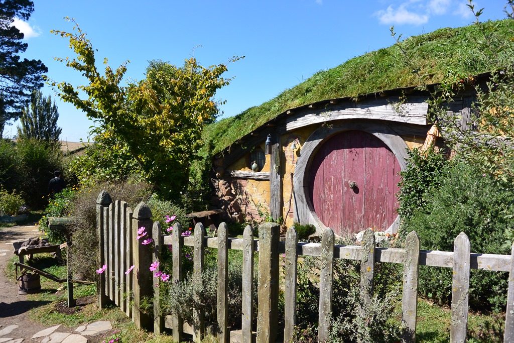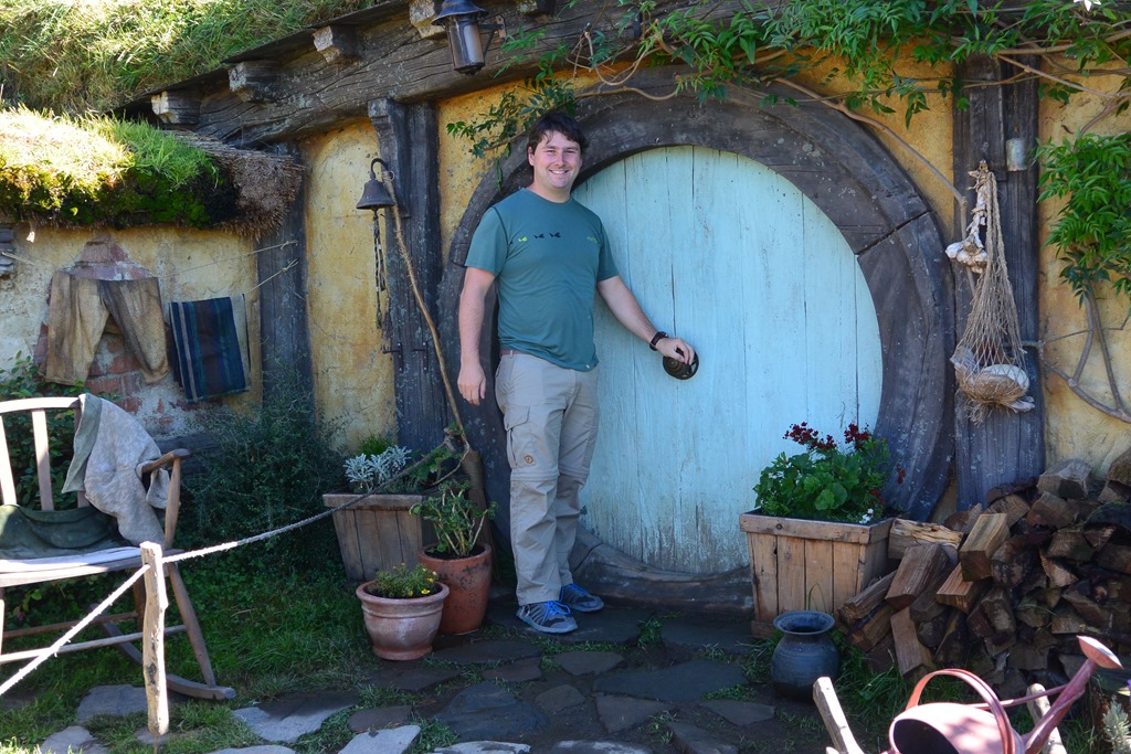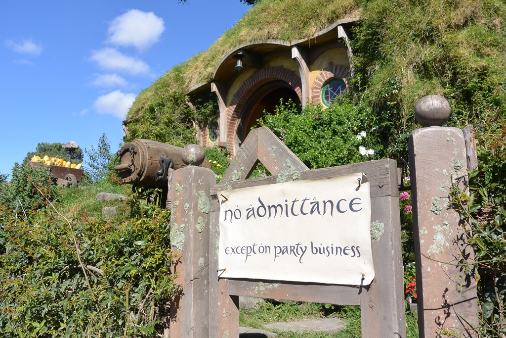 Auf dem Hügel angekommen standen wir dann vor “Bag End”. “Schon immer hat hier ein Beutlin unter dem Berg gewohnt.” Alles ist so, wie man es aus den Filmen kennt, bis hin zum nicht verzichtbaren Schild auf dem Tor.