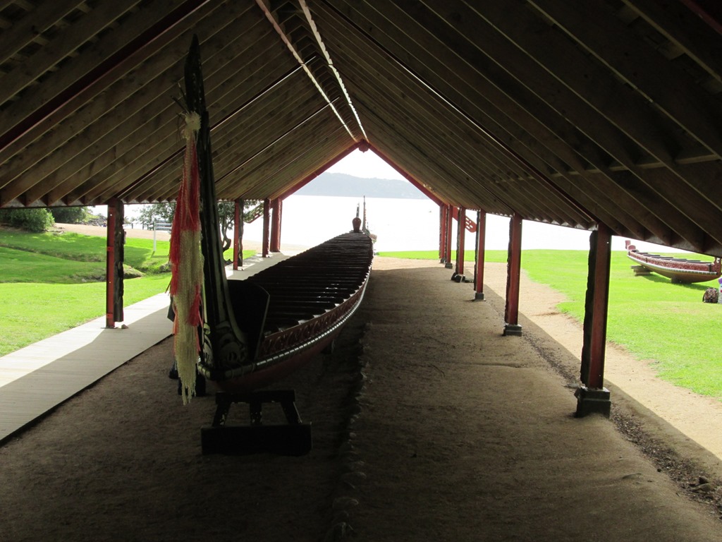 Auf den Treaty Grounds wurden unter Anderem riesig lange Kanus (“Waka Nui” auf Maori) ausgestellt, die denen nachgebaut sind, mit denen die Maori Chiefs damals angereist sind, um die Verträge zu unterzeichnen. Das längste steht im Guinness Buch der Rekorde und war bestimmt 30m lang.