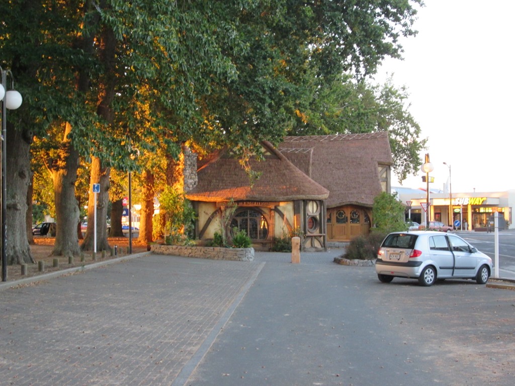 Hier sind wir also, auf dem Parkplatz der i-site in Matamata. Der ein oder andere wird wissen, warum wir hier sind, spätestens nach dem kleinen Fototip im letzten Eintrag. Die anderen erraten es vielleicht beim Anblick der kleinen Gollumstatue, die in der i-site aussteht, und mit der wir ein wenig Schabernack trieben.