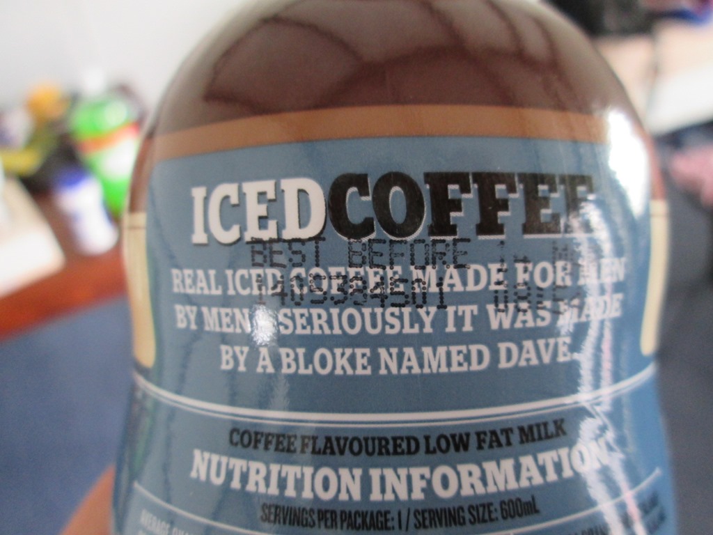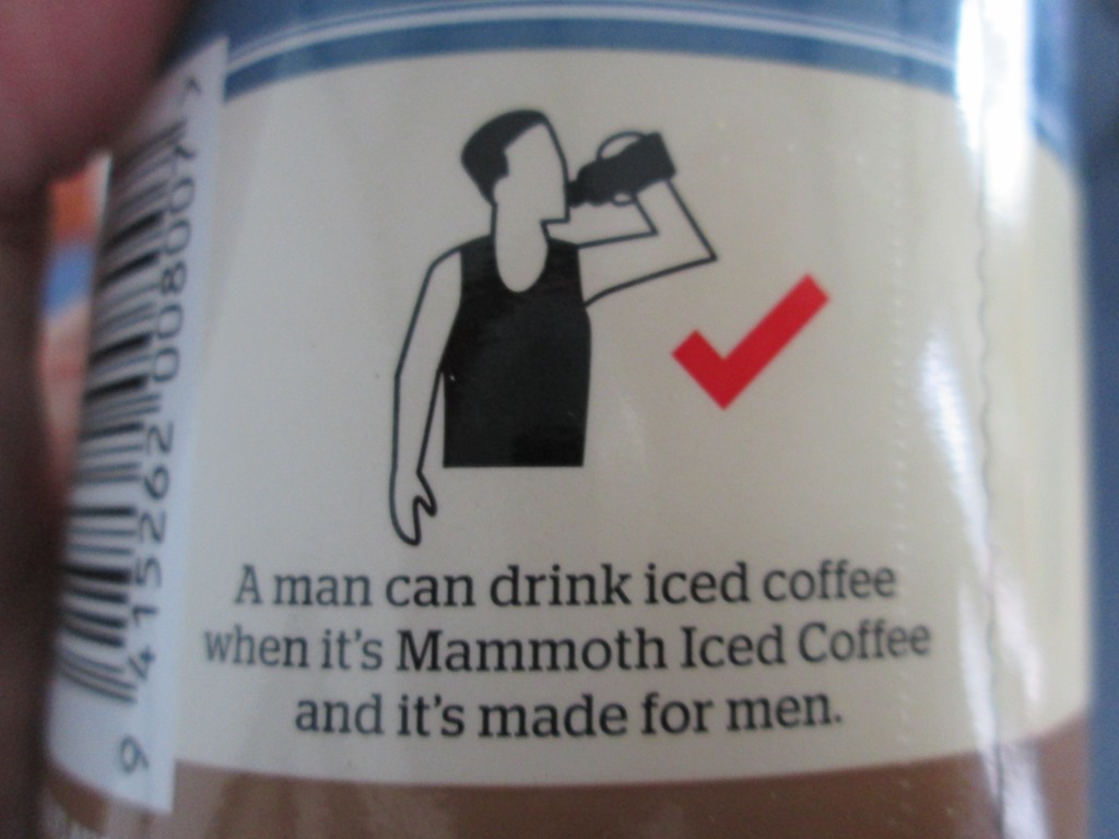 Besondere Dinge haben wir uns heute kulinarisch zwar nicht gegönnt (Spiegeleier und Reste), aber Connys Eistee möchte ich unseren männlichen Mitlesern nicht vorenthalten. Ich trinke ja normalerweise keinen Kaffee, aber soeinen würde ich mir fast noch reindrücken, nur wegen der Beschriftung!