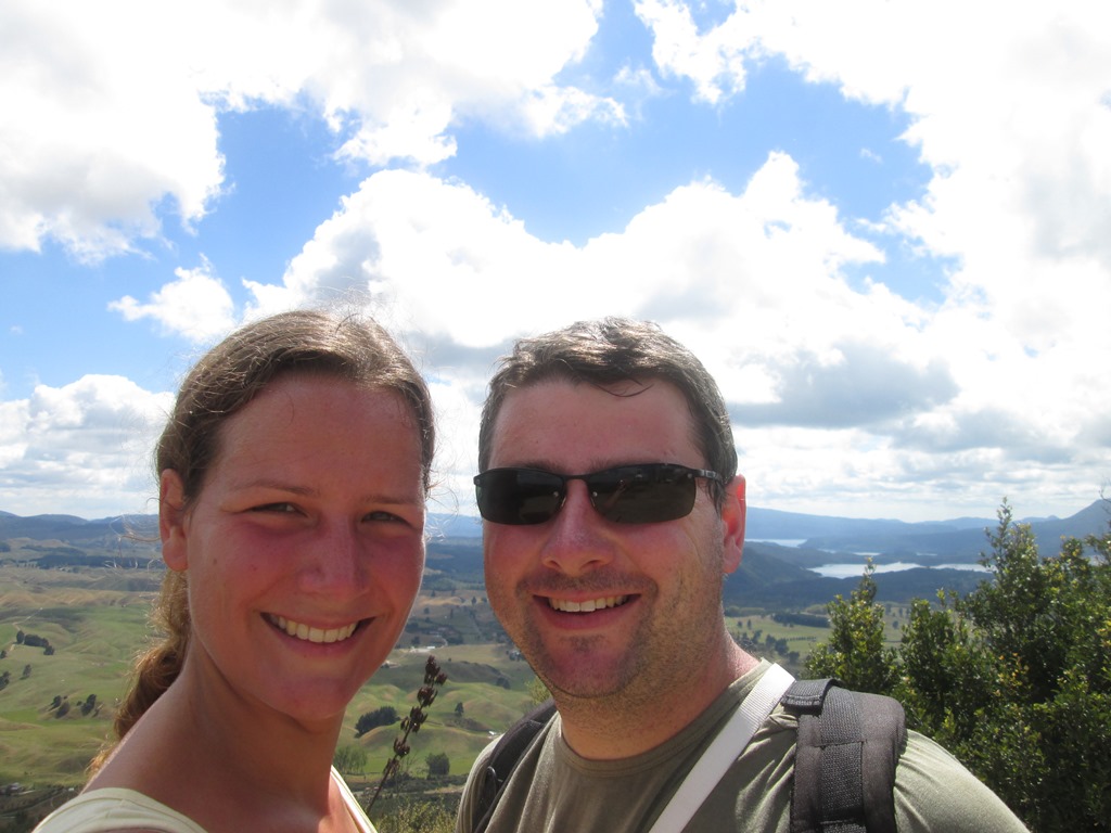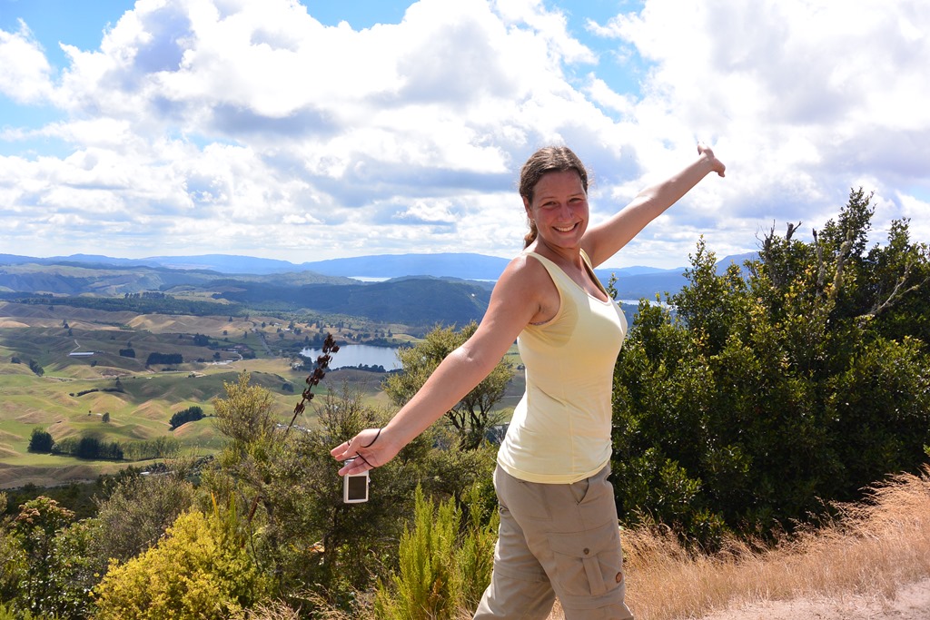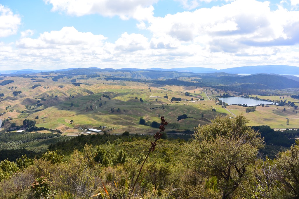 Die Landschaft der Nordinsel lässt sich von hier oben aber super erkennen. Überall hat man die kleinen, sanften, grünen Hügel und ein paar Seen. Es ist schon schön hier.