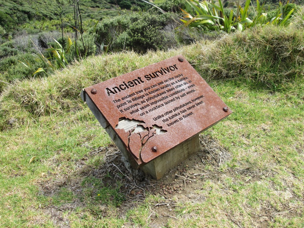 Dort angekommen bekommen wir leider nur etwa 30 Minuten Zeit, den Ort zu erkunden. Viel zu wenig, wenn es nach uns ginge. So hetzen wir einmal bis zum nördlichsten Punkt und zurück. Auf dem Weg kann man auch sehr schön den Punkt sehen, von dem die Maori glauben, dass dort ihre Seelen nach dem Tod Neuseeland verlassen und ins Meer steigen. Das ist nämlich ein Baum, der ein wenig ausschaut wie Treppenstufen und dort auch schon seit Ewigkeiten steht.