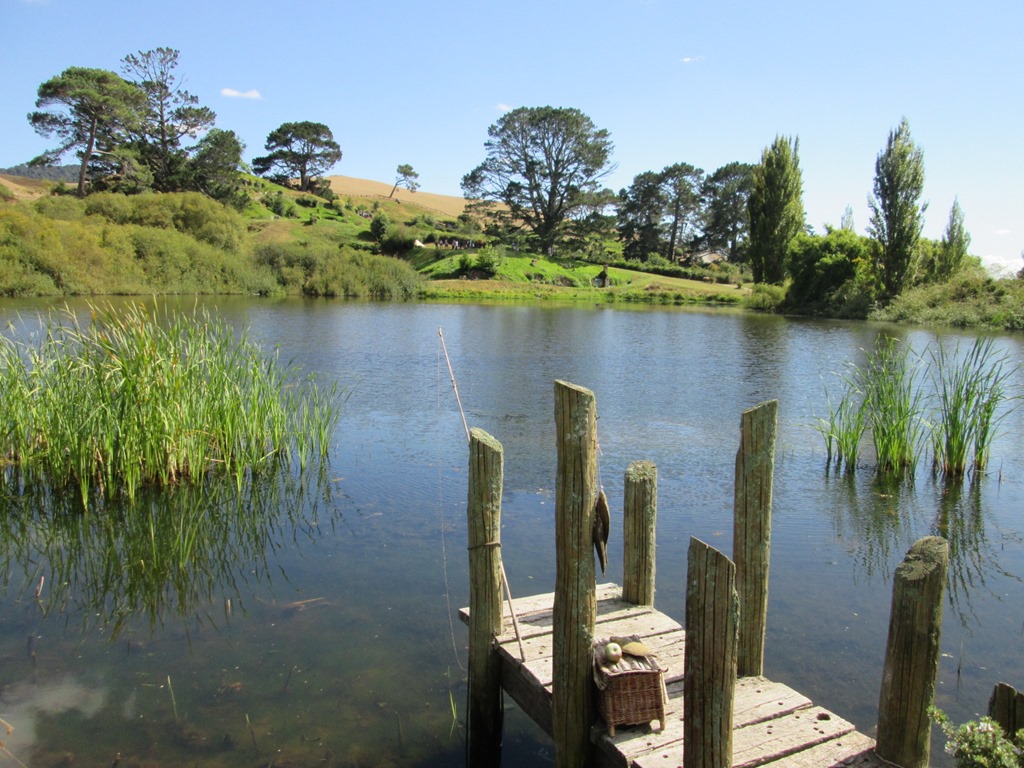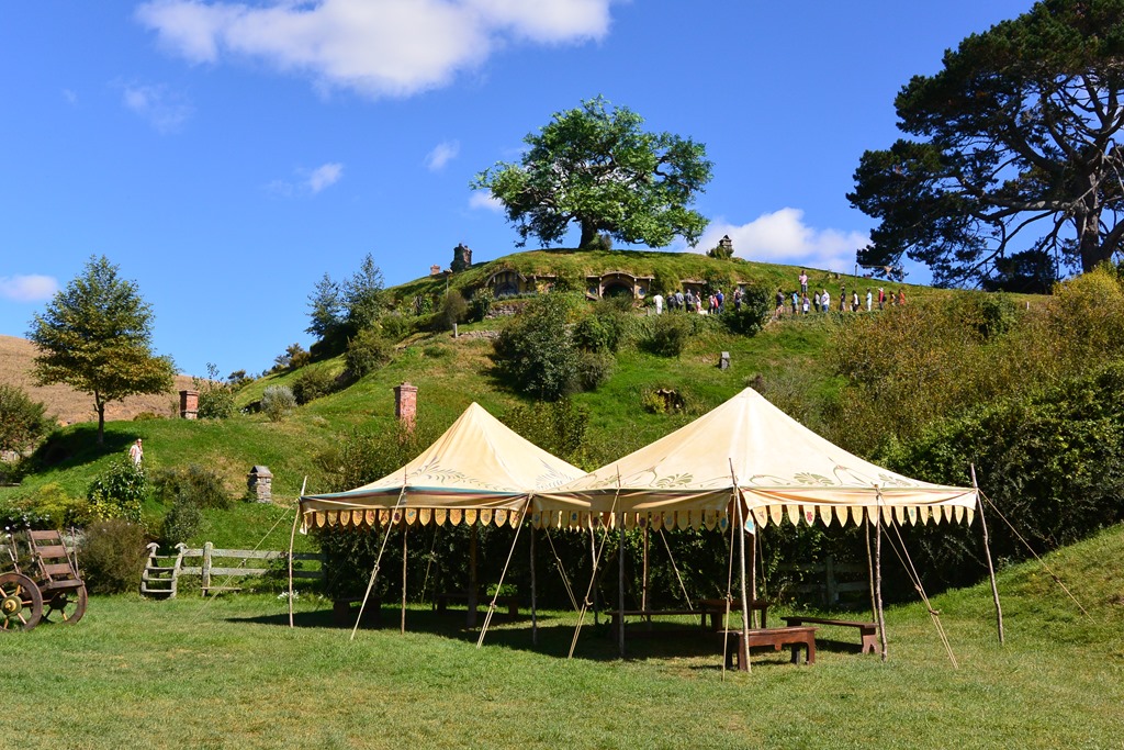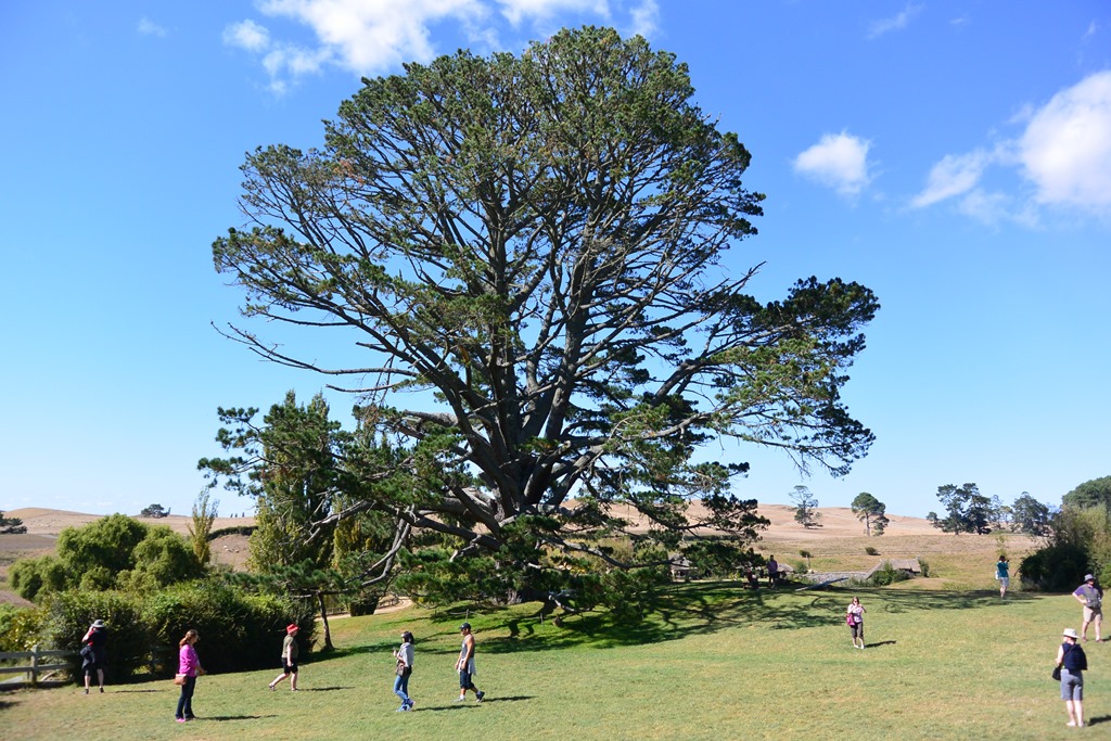 Weiter ging es hinab zur Festwiese, wo der große Partybaum steht, unter dem Bilbo an seinem 111. Geburtstag verschwindet. Bei der Suche nach der geeigneten Location war wohl die Zielvorgabe, ein hügeliges Land mit See und großem Baum zu finden: Tada! Um den Baum herum war ursprünglich nur leider ein Sumpf, welchen die neuseeländische Armee (!) trockengelegt hat.