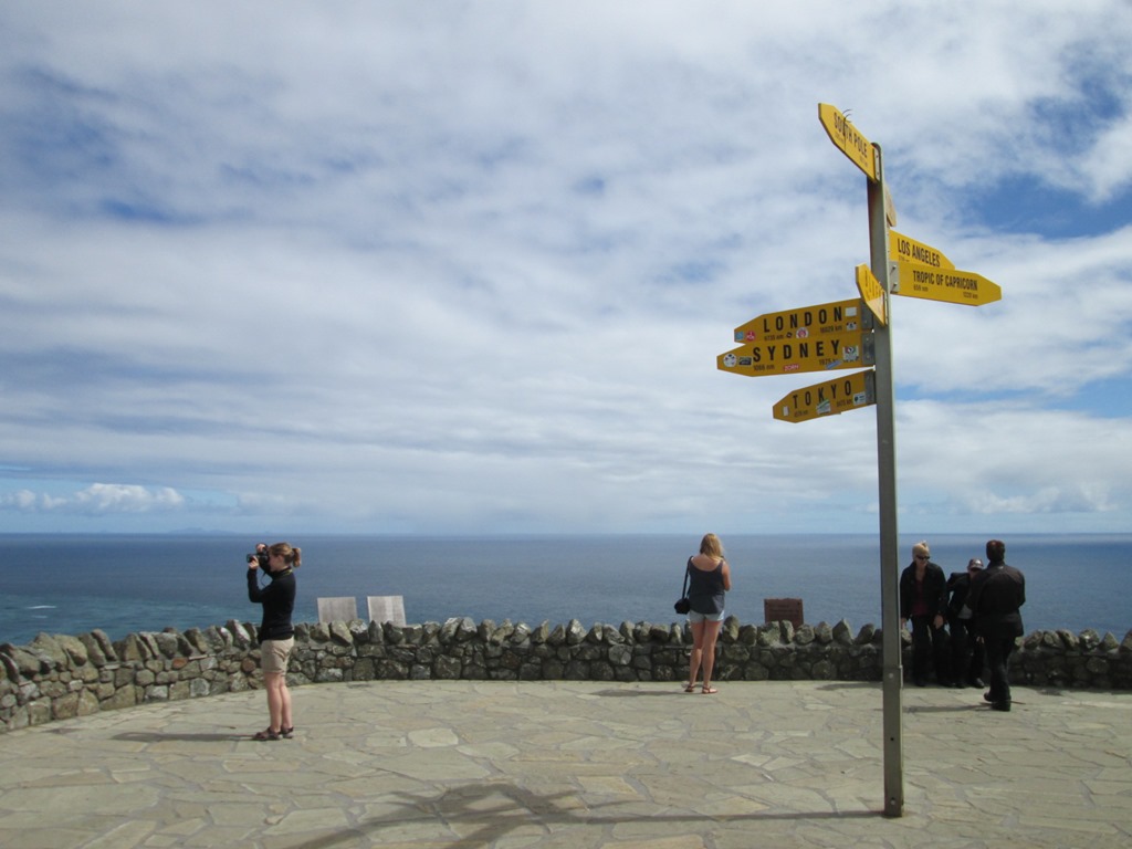 Am Leuchtturm finden wir auch einen Wegweiser mit den Entfernungen zu den bekannten Städten dieser Welt. Eine deutsche Stadt ist nicht dabei, aber dafür London. Von London sind wir also hier exakt 18029 Kilometer entfernt. Bei einem ungefähren Erdumfang von 40.000km können wir also nicht sehr viel weiter von zuhause weg sein. Wow.