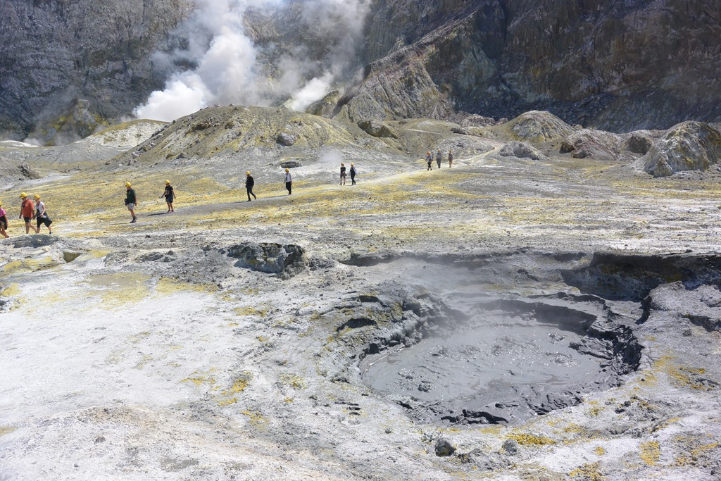 Und da stehen wir dann. Auf einem aktiven Vulkan. Krass. Überall stinkt es nach Schwefel, überall zischt es, überall blubbert es. Uns ist das ganze nicht so wirklich geheuer, die Neuseeländer sind das aber wohl gewohnt und die Tourguides sind hier ja sowieso täglich und somit auch total tiefenentspannt.