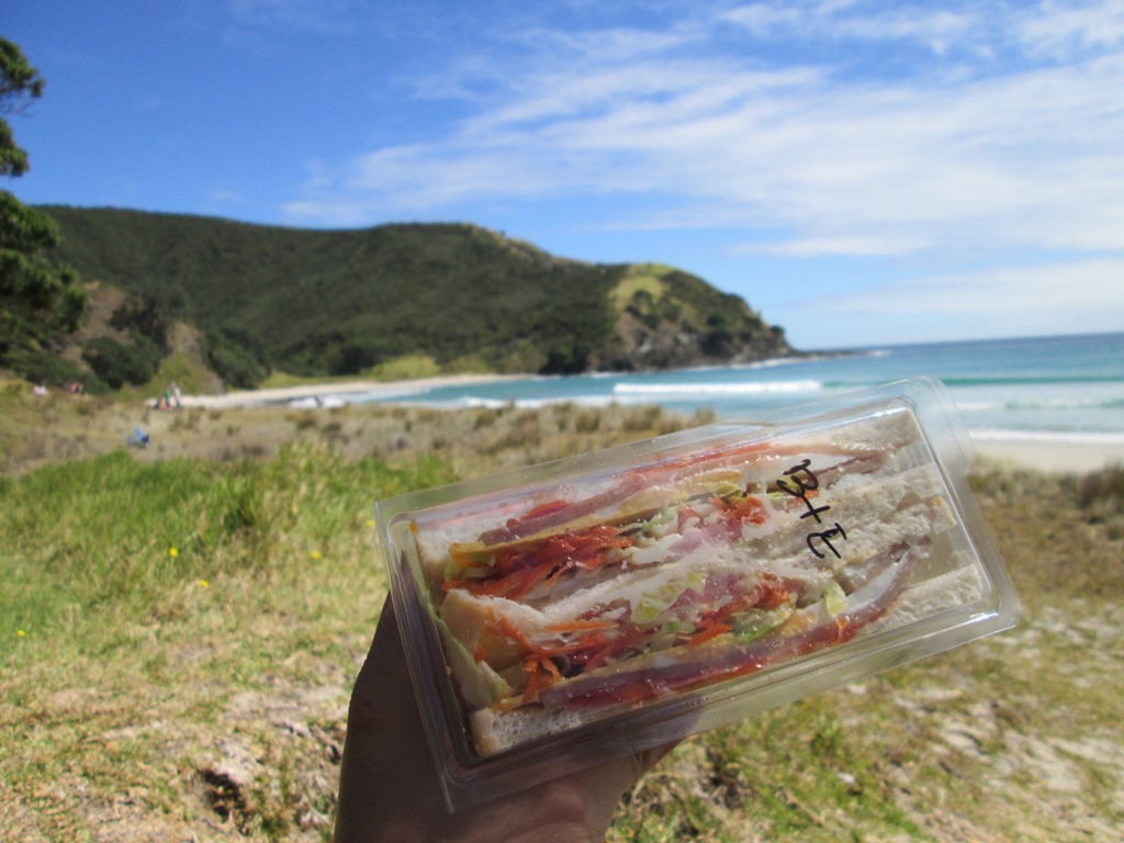 Wir haben uns dort für etwa 2 Stunden aufgehalten und im dortigen Café noch den besten Muffin der Welt konsumiert. Während wir uns am Muffin zu schaffen gemacht haben, hat sich ein Vogel mit seltsam langen Beinen am Zucker des Nebentisches bedient. Schlaues Tier! Einen langen Spaziergang mit schweren Rucksäcken und einen Neuseeland-Lamm-Kebap später sitzen wir im Bus nach Auckland, dass wir fix erreichen und wo wir auch relativ fix in unser Hostelbett fallen. Der Stray-Bus war für uns so ganz ohne Auto in den ersten Tagen eine super-Sache, können wir nur empfehlen. Wenn ihr da irgendwas buchen wollt, könnt ihr gerne auch meine Stray Mate Number angeben und bekommt bei genügend hohem Einkaufspreis auch 5% Rabatt: MK4975.
