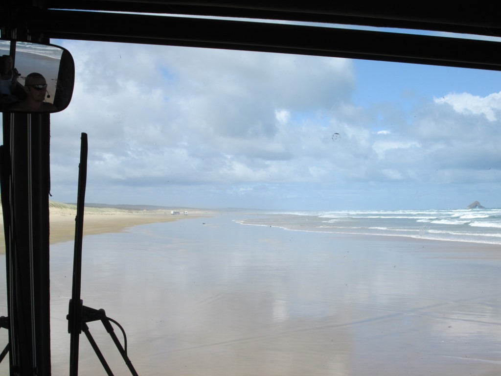 Dann heißt es wieder einsteigen in unseren Allrad-Bus, denn wir fahren nun fast den gesamten 90-Mile-Beach entlang. Das ist zwar einerseits sehr cool, aber nach etwa 2km auch ein bisschen langweilig, findet Conny.