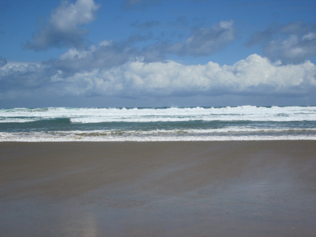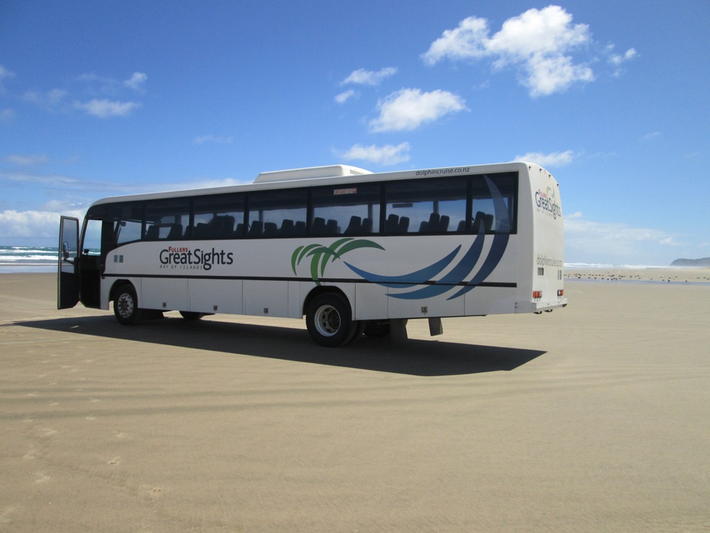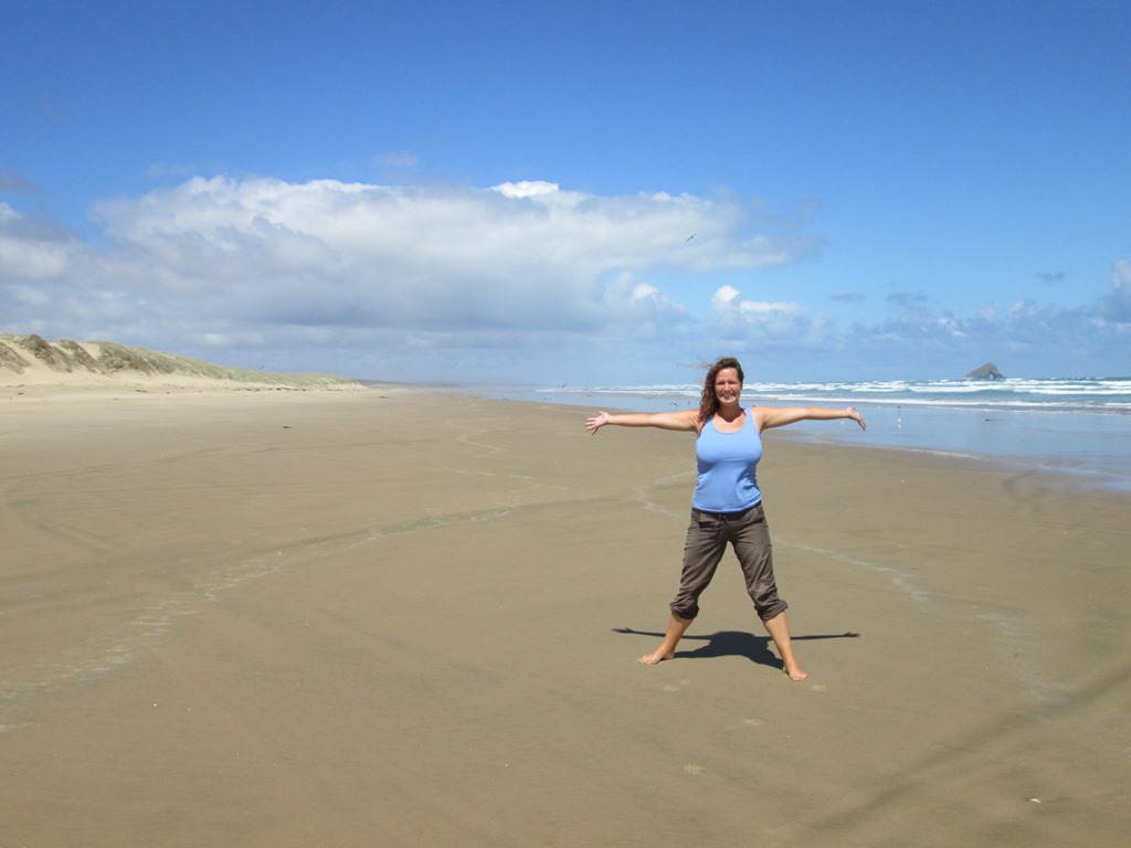 Nach drei Fahrten musste ich voller Sand dann wieder in den Bus, es ging weiter zum 90-Mile-Beach. Der 90 Mile Beach ist wohl tatsächlich nur etwas über 50 Meilen lang, aber da Australien wohl einen 90 Mile Beach hat, kann sich Neuseeland ja nicht lumpen lassen. Unser Busfahrer wäre auch dafür, ihn in 91-Mile-Beach umzubenennen, nur damit man eine Meile mehr im Namen hat.