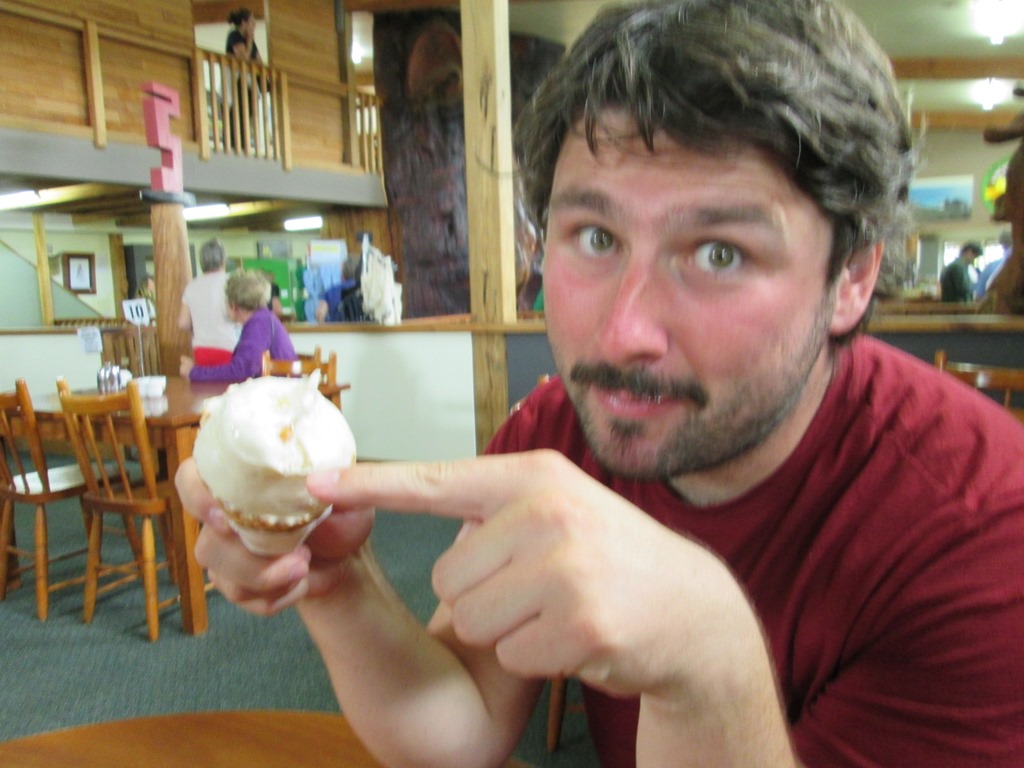 Der Trip endet an einem Betrieb, der Kauri-Holz verarbeitet. Dort essen wir erstmal ein Eis der Geschmacksrichtung Hokey Pokey. Das ist eine Neuseeländische Spezialität, aber eigentlich nur Vanilleeis mit Karamel-Stückchen. Trotzdem sehr lecker. Kauri-Holz-Souvenirs haben wir keine gekauft, die Preise fingen irgendwo bei 60 oder 70 Dollar an. Ist ja auch klar, das Holz ist selten, also ist der Kram relativ teuer.