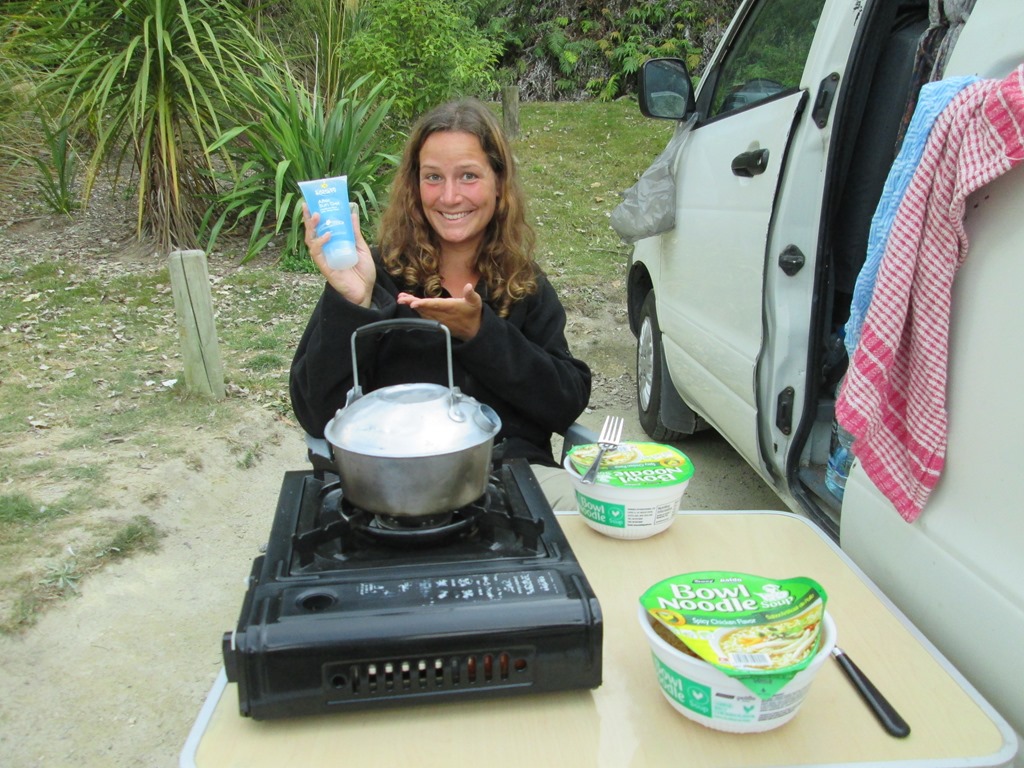 Abends nutzen wir den free BBQ im Holiday Park und machen uns nochmal lecker Burger, hatten wir ja so lange nicht. Hier auf dem Campingplatz lernen wir auch einige nette Neuseeländer und Australier kennen, alle ein wenig älter als wir. Campen scheint hier in Neuseeland nicht nur bei Backpackern populär zu sein, sondern ist vor allem auch bei Senioren total beliebt.