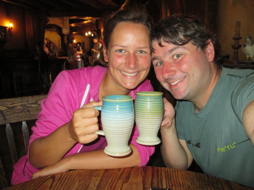 Und dort im Wirtshaus endete unsere Tour dann auch, nicht ohne, dass wir vorher noch ein Getränk in Hobbithumpen zu uns nehmen durften. Bei Marcus gab es Ingwerbier, bei mir ein Ale!
