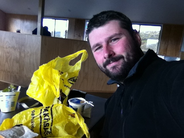 Das Knie tut weh, die Füße stinken, höchste Zeit ein Bier zu trinken! Bier gibt es aber leider nicht, nur ein trockenes Nutella-Toast, bevor ich nach einer unruhigen Nacht um 7:30 Uhr die Iris Burn Hütte verlasse.