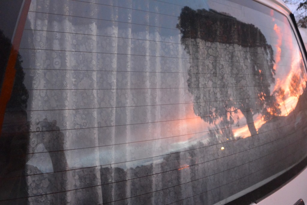 Die Berggipfel des Nachbargebirges hängen inzwischen aber schon wieder in den Wolken, nachdem sie gestern Nachmittag und heute in der Früh noch frei gewesen sind.