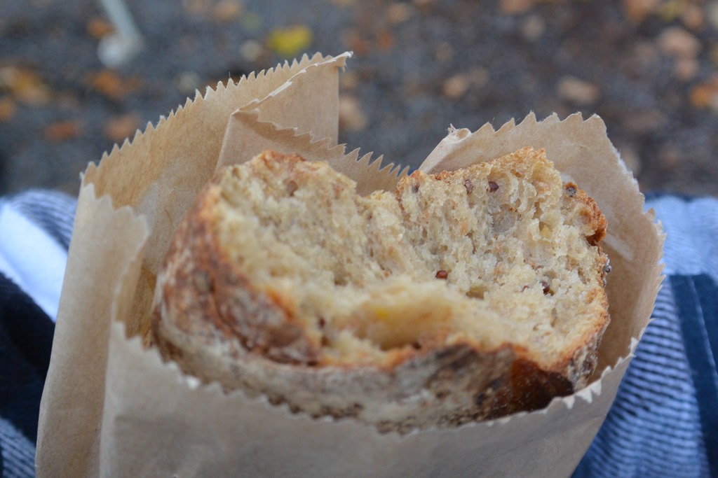 Wir sind auch zugegebenermaßen begeistert. Wir gönnen uns je ein Pain-au-chocolat, das beste was wir je hatten und kaufen uns daraufhin vom gleichen Stand ein Leib Brot für den späteren Verzehr. Wholegrain-Mustard-Bread, also Vollkorn-Senf-Brot, oha! Das Brot kommt dann auch schneller als gedacht zum Einsatz, denn Conny gönnt sich am Suppenstand eine Kumara-Bacon-Suppe und da passt Brot natürlich super zu. Das Brot ist übrigens grandios!
