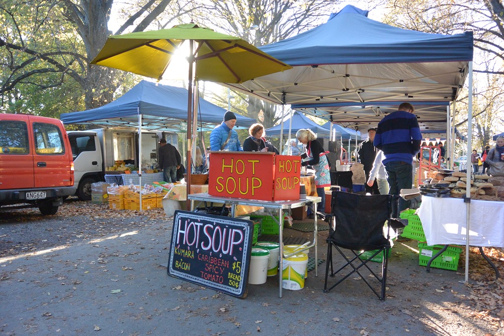 Wir setzen uns noch ein wenig in den Fernsehraum und ruhen uns aus. Außerdem schauen wir mal was so für Wetter angesagt ist in unseren nächsten Destinationen. Für Christchurch haben wir natürlich nicht mehr nachgeschaut, sonst hätten wir vielleicht gemerkt, dass die Nacht schweinekalt werden sollte. Wir wachen jedenfalls morgens ordentlich durchgefroren auf. Für winterliche Temperaturen ist unser kleiner Camper definitiv nicht gemacht. Brrrr. Schnell heiß duschen und los gehts, denn um 8 Uhr fängt der “Farmers Market” an, es soll einer der schönsten in Neuseeland sein.