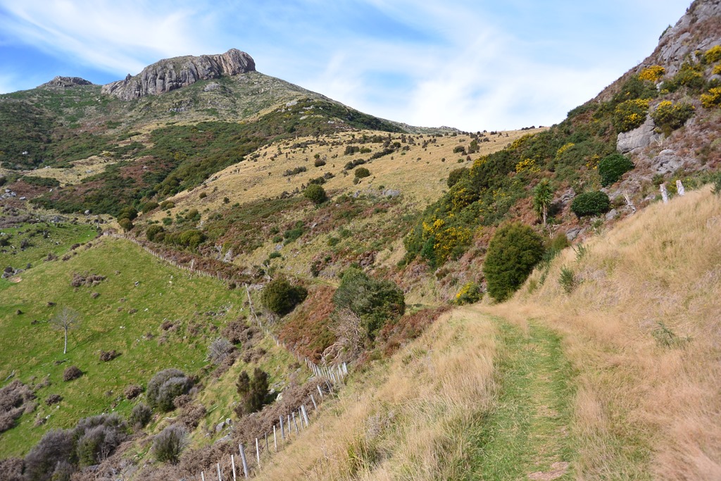 Also geht es bald wieder an den Abstieg, der sich gemächlich durch die grünen Hügel herunterschlängelt.