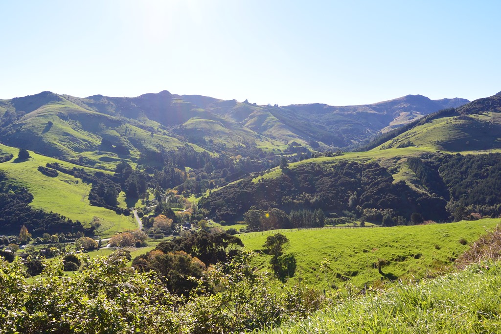 Es ergeben sich wunderschöne Anblicke auf den Krater von der Straße. Dort unten, am natürlichen Hafen liegen einige äußerst pittoreske Orte, unter anderem das Städtchen Akaroa, wo wir heute bleiben. Generell haben die Orte hier noch recht viele französische Wurzeln, denn die Franzosen wollten auch einst ein Stück Neuseeland kolonisieren. Hat nicht geklappt.