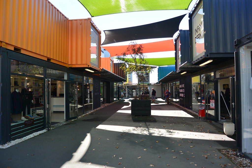 Heute überlegt man, was man mit der Kirche machen soll. Einige meinen wohl, sie soll als Mahnmal so bleiben, wie die Gedächtniskirche in Berlin zum Beispiel. Es gibt aber auch Meinungen,die sagen, man solle sie lieber abreißen und neu bauen oder einfach wieder restaurieren. Nicht weit von der Kathedrale ist die “Re-Start”-Mall. Da so ziemlich alle Geschäfte zerstört waren, zeigt sich hier in besonderem Maße der Einfallsreichtum und Pragmatismus der Neuseeländer: Sie haben sich einfach Container zurechtgelegt und dort Geschäfte reingebaut. Richtig viele.