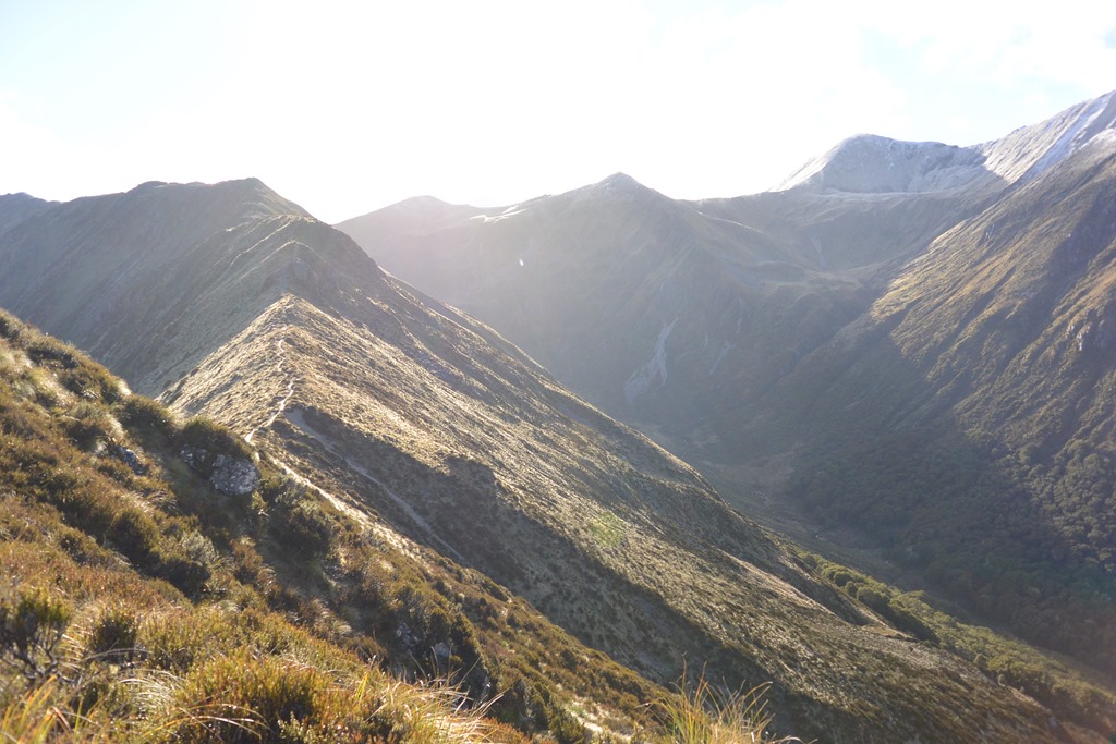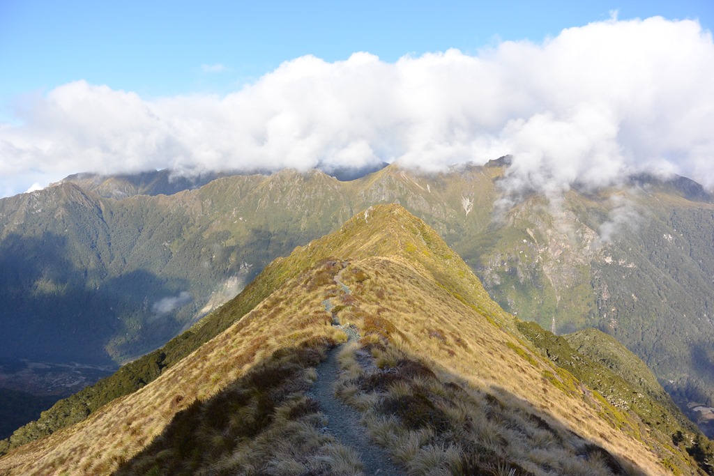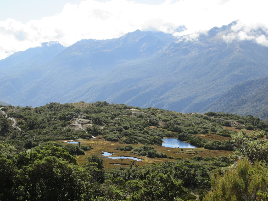 Der Weg zum Key Summit zweigt vom Routeburn Track ab und es geht in Serpentinen durch Buschland auf den Gipfel. Dort habe ich einen grandiosen Ausblick wie versprochen über die drei umgebenden Täler.