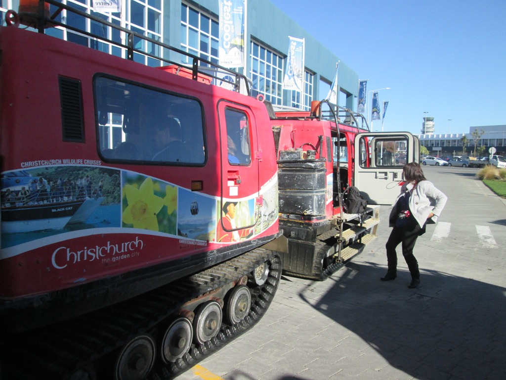 Nächster Stopp: Antarctic Center. Von Christchurch aus starten so ziemlich alle Expeditionen zur Antarktis, die von hier aus etwa 5000km entfernt ist. Dementsprechend gibt es auch eine Art Museum dazu, in welchem man sich zur Antarktis aufschläuen kann, das wollten wir natürlich nicht missen. Wir kommen an und werden von der Kassiererin direkt erst mal für verschiedenste “Aktivitäten” angemeldet. Damit hat sie uns ein bisschen überrumpelt und wir gehen einfach in die Richtung in die wir geschickt werden.