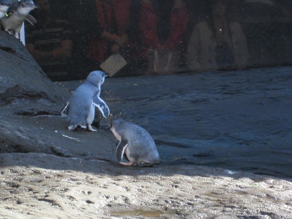 Rechtzeitig für unsere “Penguin Backstage Tour” sind wir am Treffpunkt und dürfen mit der Pinguin-Pflegerin einen Blick hinter die Kulissen werfen. So kommen wir nochmal an den Pinguin-Teich, wo vorher die Fütterung stattgefunden hat und erfahren allerhand interessanten Kram zu den Pinguinen. Einige sind wohl auch sehr intelligent und haben schon den ein oder anderen Fluchtversuch hinter sich. Andere haben einen Schlag auf den Kopf von einem Boot abbekommen und sind seitdem ein wenig verwirrt. Außerdem sind die Liebesbeziehungen zwischen Pinguinen wohl Seifenoper-reif und es gibt viele Liebschaften und Verwirrungen.