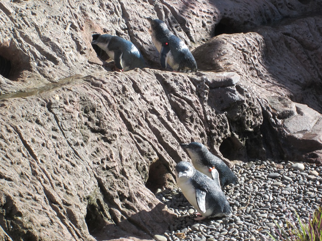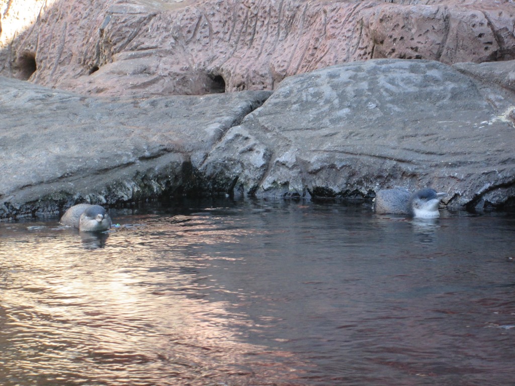 Als nächstes werden wir direkt zur Pinguin-Fütterung geschickt. Junge, junge, hier jagt ja echt ein Highlight das nächste. Die kleinen “blue penguins” sind allesamt mit irgendeinem handicap unterwegs und wurden dann hier wieder aufgepäppelt. Sie futtern dann auch ordentlich Fisch aus Holland, nobel geht die Welt zugrunde. Conny findet die Pinguine niedlich, die sind nämlich kleiner als man so denkt und watscheln so vor sich hin.